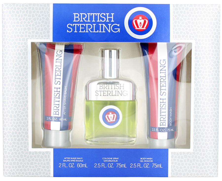 British Sterling by Dana For Men SET: Eau De Cologne 2.5oz + After Shave Balm 2oz + Shower Gel 2.5oz