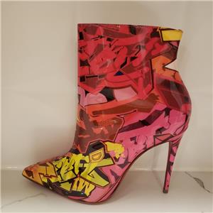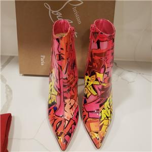 - Christian Louboutin bootie in metro graffiti-print patent leather.