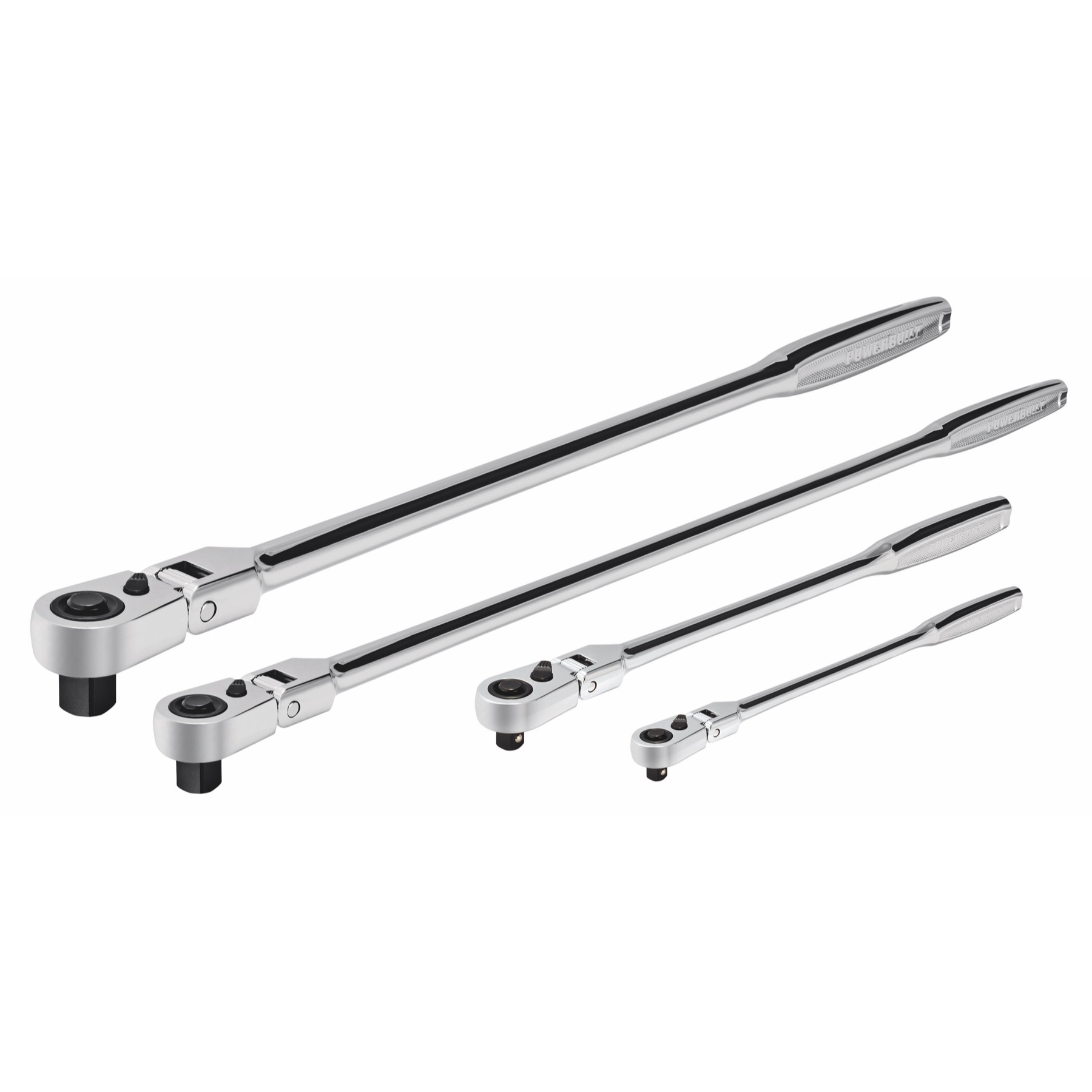 Powerbuilt Professional Technician ratchets are constructed of high-quality Chrome Vanadium (CR-V) steel with a mirror-polished chrome-plated finish and are precision crafted to exceed ANSI standards for quality and performance. The sealed quick-release button blocks dust and debris and makes socket changes quick and easy. The long reach contour handle fits flat in the palm of the hand adding both comfort and leverage and the thin-profile flex head allows you to swivel the ratchet head up to 180° making it easier to reach into those crowded spaces. These ratchets offer the look, feel and performance hard-working techs deserve.