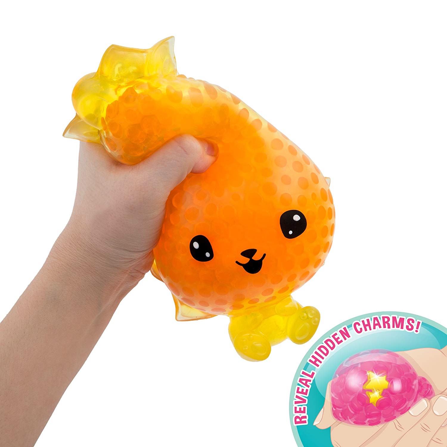 Bubbleezz Jumbo are giant collectable characters that live and play in a parallel Bubble verse - a squeezy bubbly world of wonder & fun! Each Bubbleezz has hundreds of Bubbleezz Beads inside that move around as you squeeze them! Bubbleezz Jumbo Dina Dandelion has 3 hidden power charms - squeeze and transform your Bubbleezz to reveal! Each of these squeezy collectibles are inspired by fruit, animals, desserts, monsters, and more! Collect them all! 1 Supplied