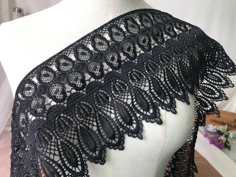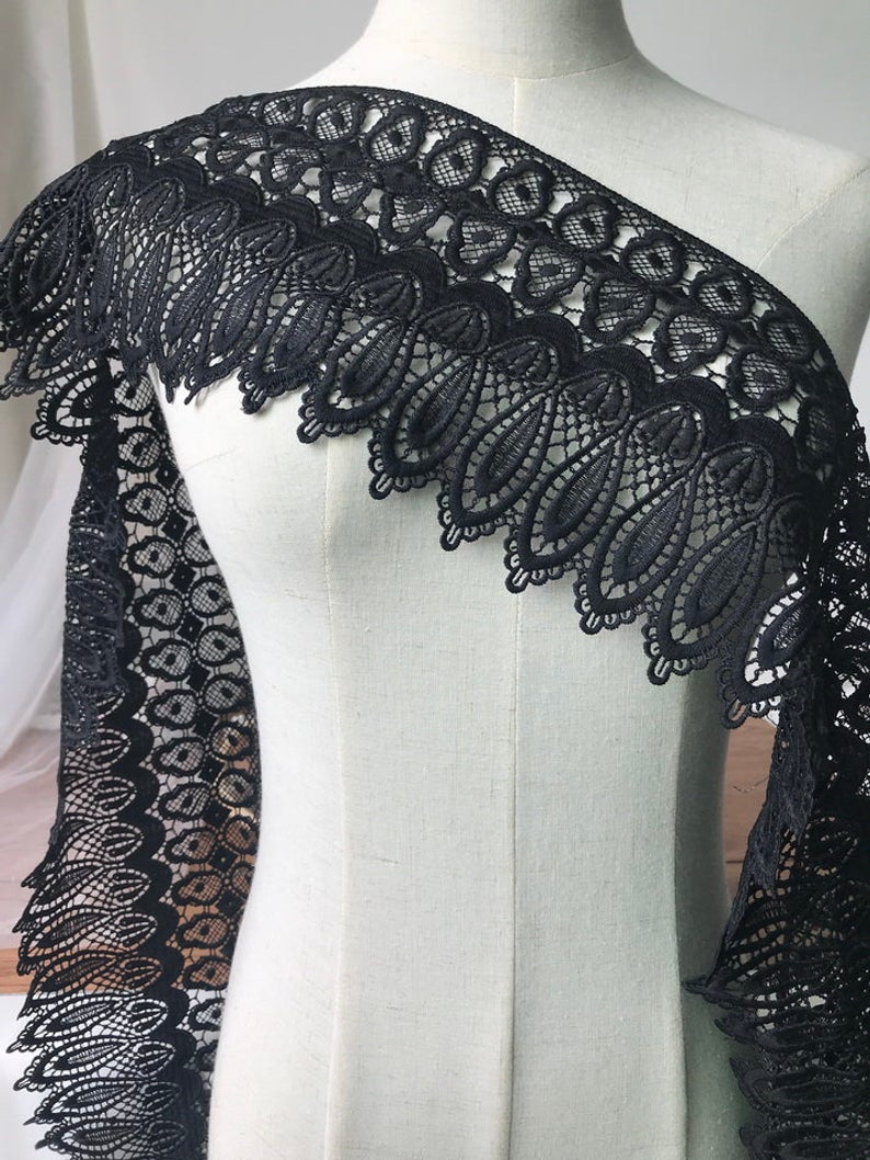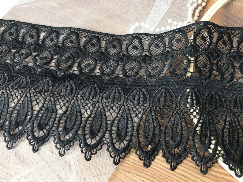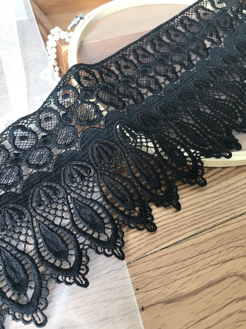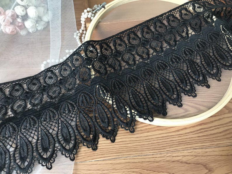 Black venice lace Teardrop lace trim 5.6" wide Black Tear Drop lace by the yard