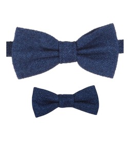 Mens Kids Boys Matching Herringbone Tweed Dickie Bow Tie in Blue