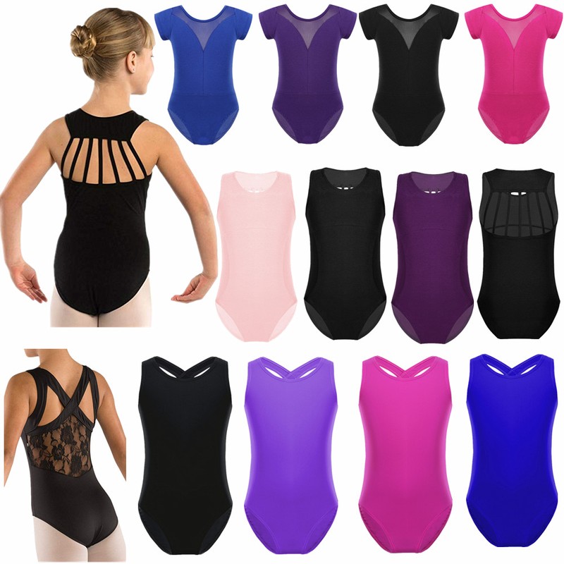 Cutout back. Elastic ballet leg cut. Stretchy fabric, breathable and comfortable to wear. Stylish dancewear for your girl.