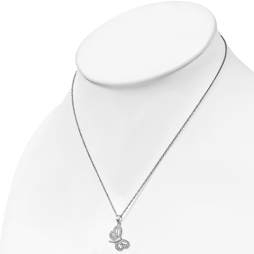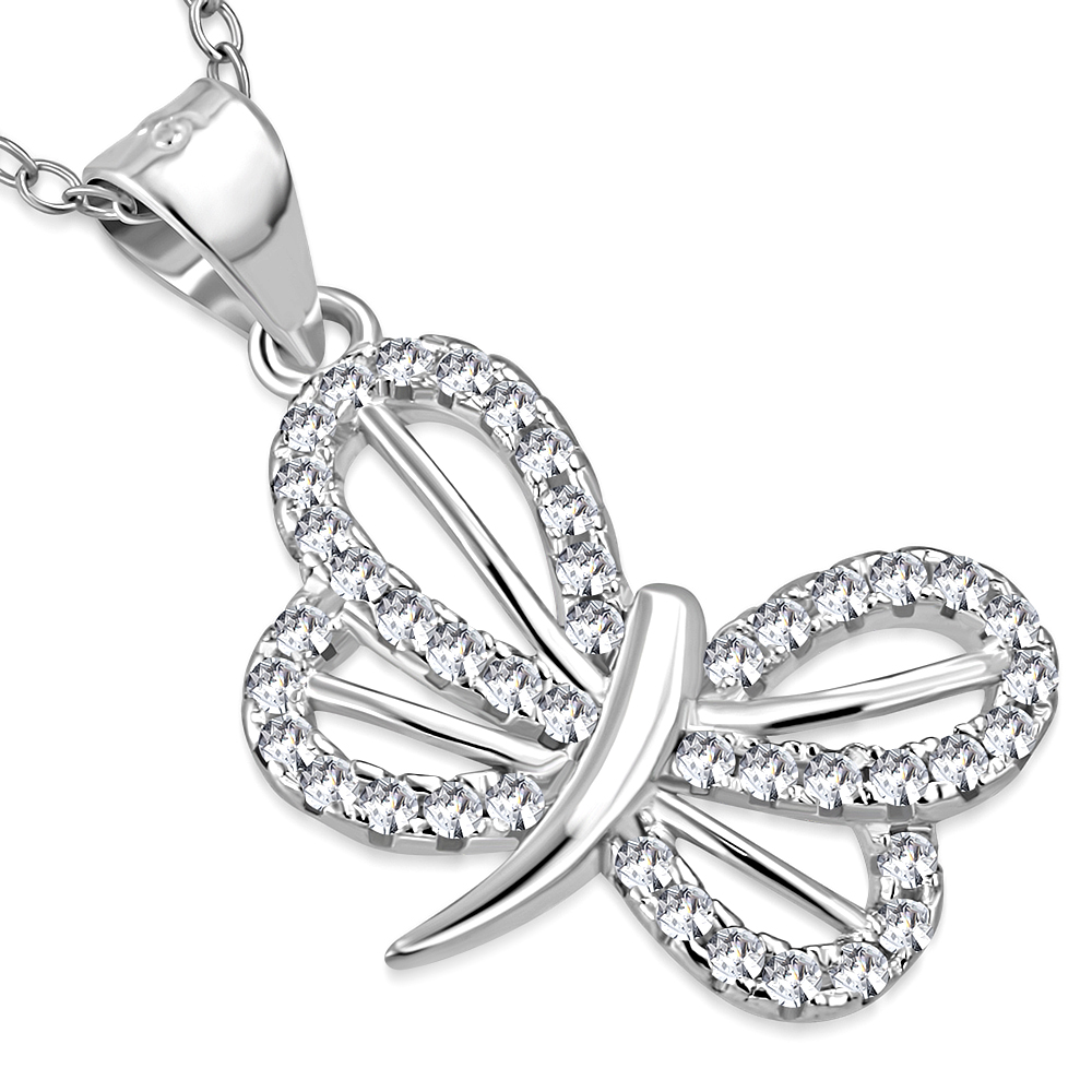 Feature 2: | Fashionable design: This feminine butterfly necklace features bow-like wings paved with prong-set CZ. |