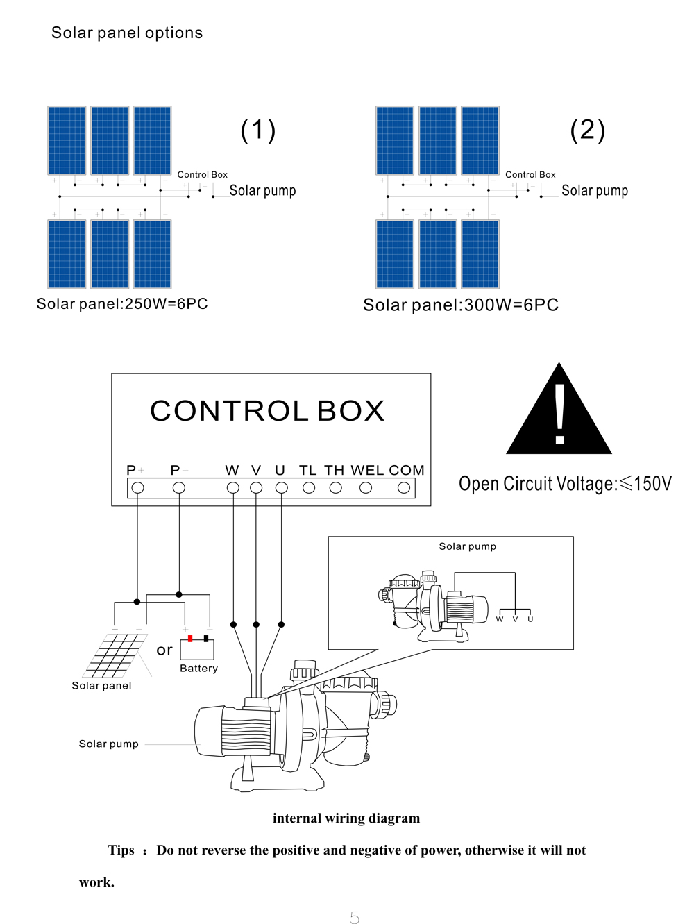 - 1 x WBS® Swimming pool solar pump with 2m cable