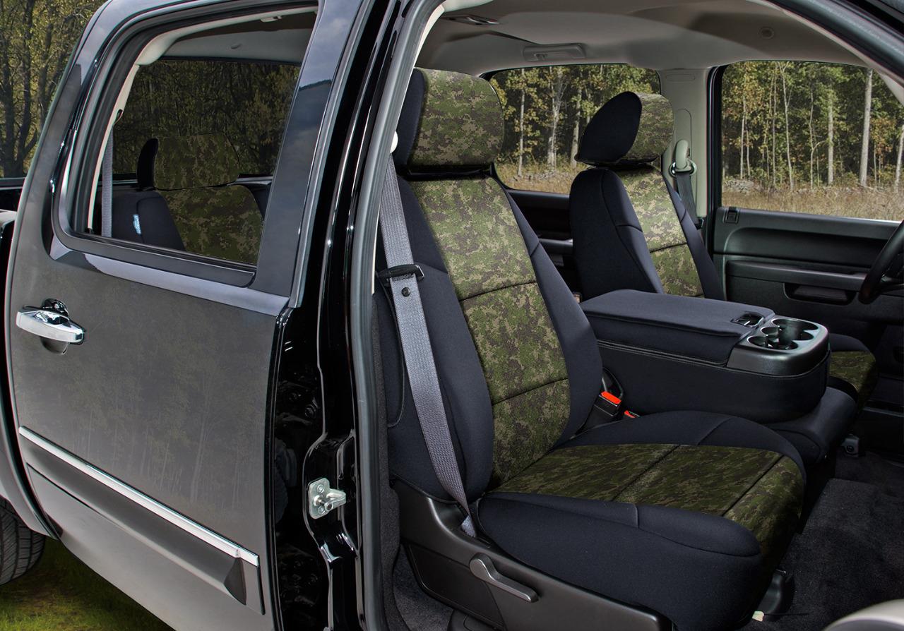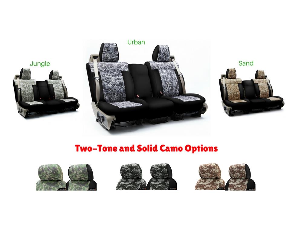 Coverking’s Neosupreme seat covers now features the Printed Series, a collection of original patterns exclusive to our brand. For the military mind, we have all shades of camo from tan to green. You can choose from the digitally marked camo in two unique styles in solids or with black accents. Since these covers are custom made, each cover will install with ease for a snug fit.