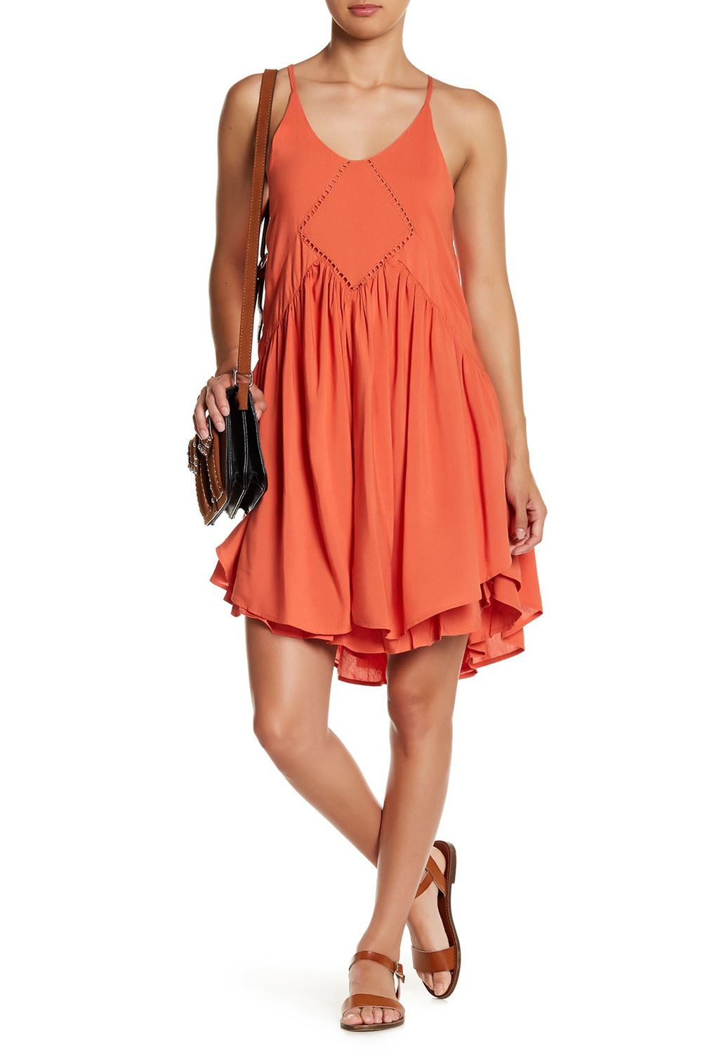 WOMEN'S RACERBACK DRESS SCOOP NECK SLEEVELESS CUTAWAY SHOULDERS APRICOT ORANGE