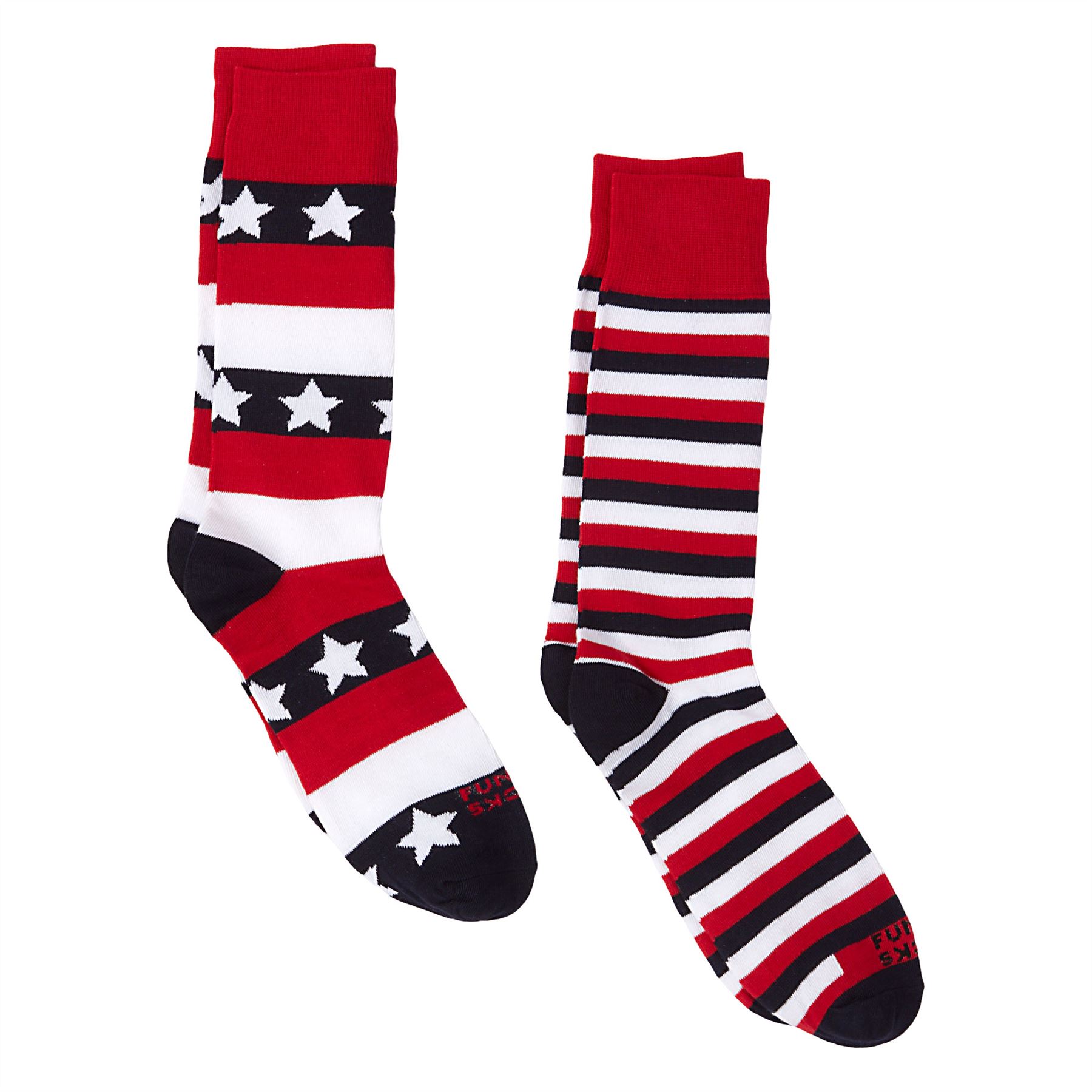 NEW FUNKY SOCKS MEN'S 2-PACK US FLAG STRIPES PATTERN TRI-COLOR RED & BLUE 10-13