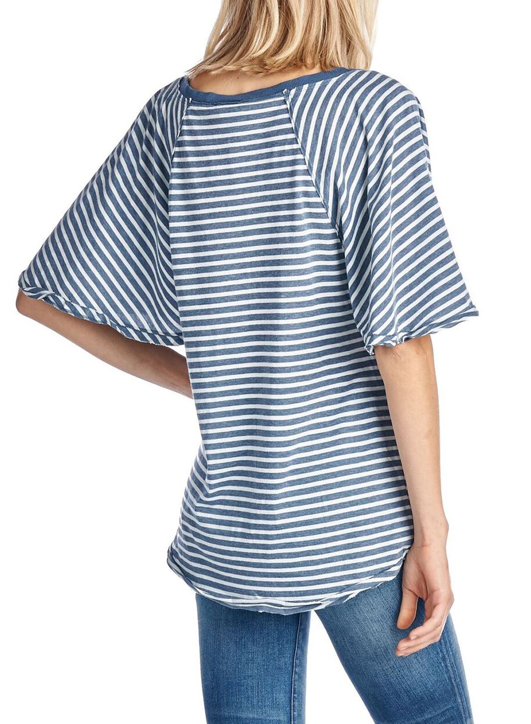 UNION BAY WOMEN'S LACE-UP TOP FLUTTER SLEEVE S/S STRIPED IN TWILIGHT 'XL' MSRP32
