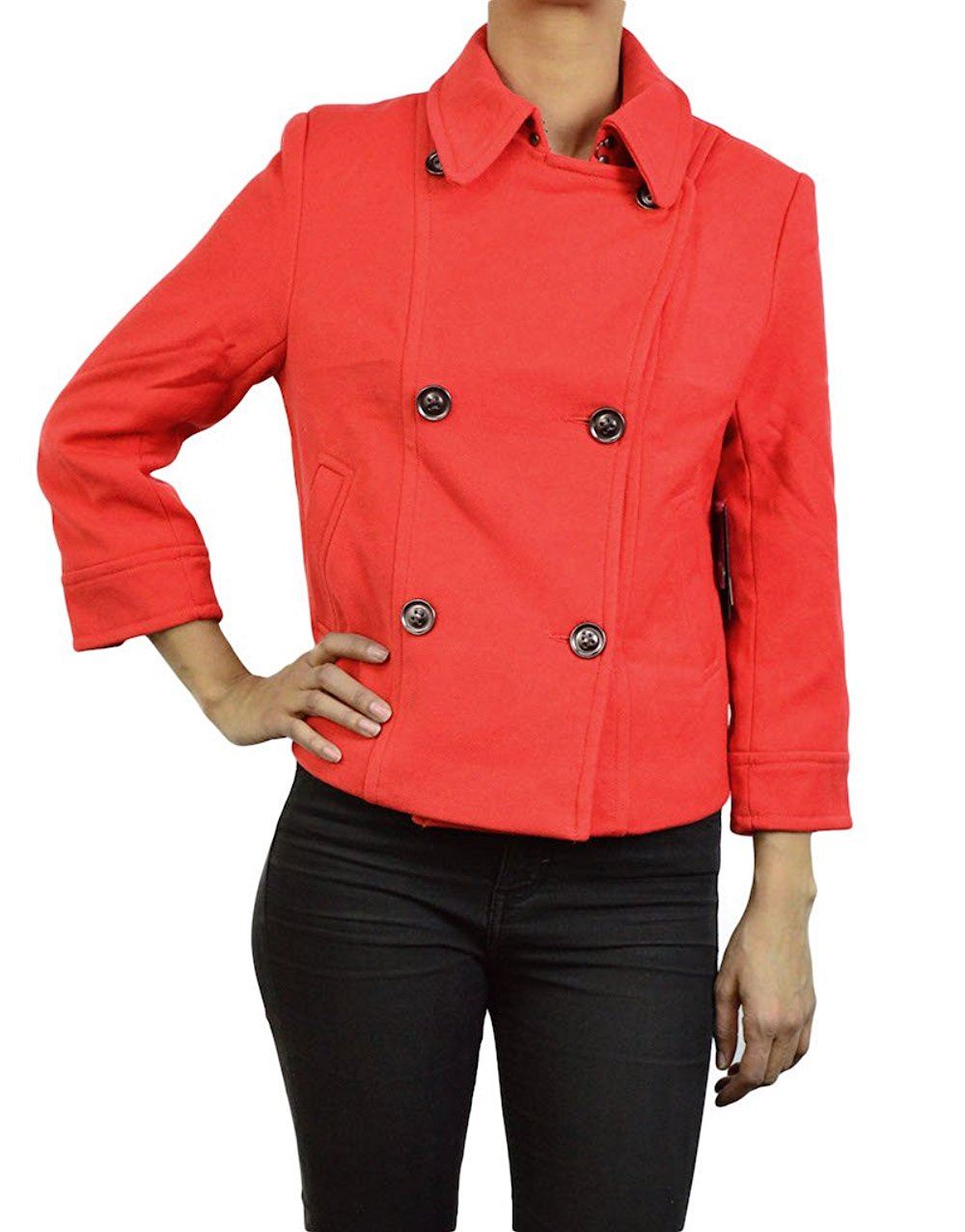 WOMEN'S OUTWEAR BRAND NEW CROP COAT JACKET IN SOLID BRIGHT COLOR ORANGE