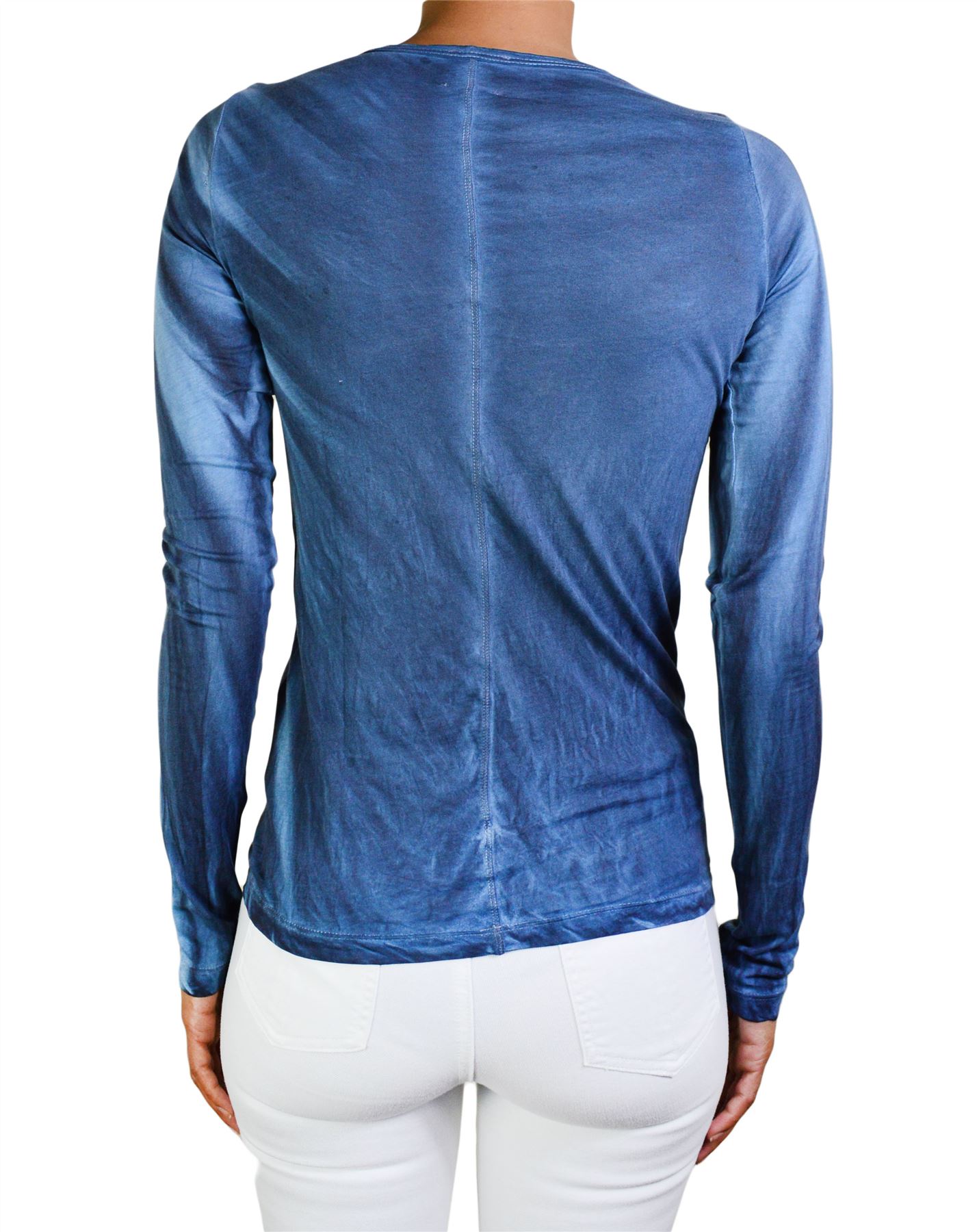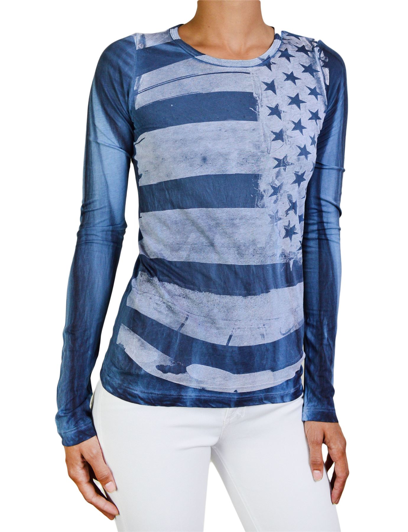 NWT ROCKSTAR SUSHI WOMEN'S T-SHIRT LONG SLEEVE DISTRESSED FLAG PRINT VF038 BLUE