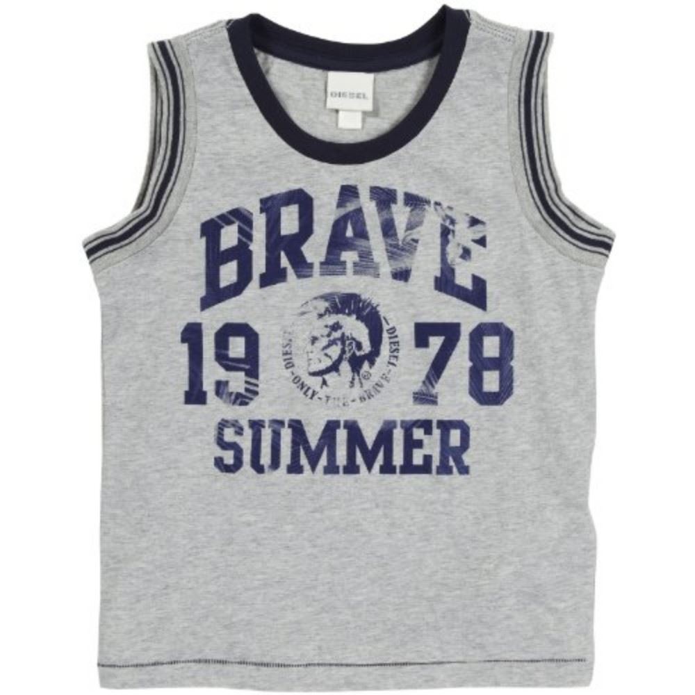 DIESEL JUNIOR BOYS RINGER VARSITY PRINTED TANK "BRAVE 1978 SUMMER" STONE MSRP 29