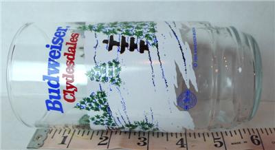 Budweiser Clydesdale Christmas Glass 1995 Official Measures 5 3/4" tall. Paint is vibrant. No chips or cracks. Holds (just at 2 cups) 16 ounces. Have a great day! Bling Blinky of TEXAS