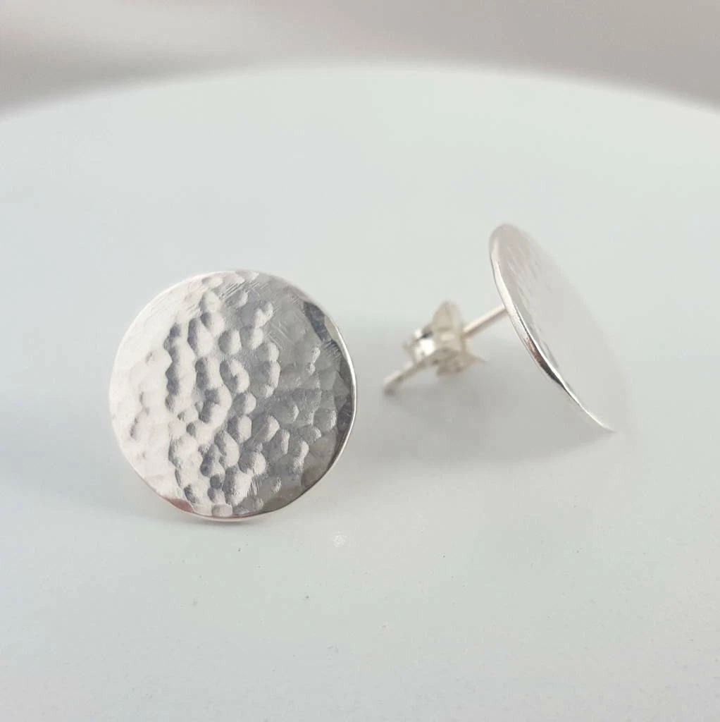 Solid 925 Sterling Silver Stud Round Shape Handmade Hammered pattern Earrings