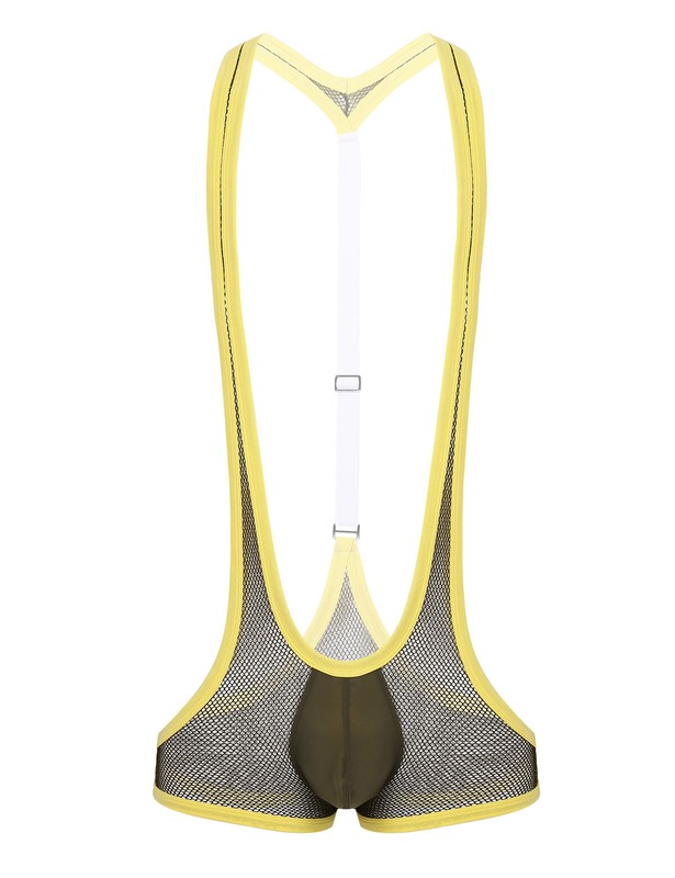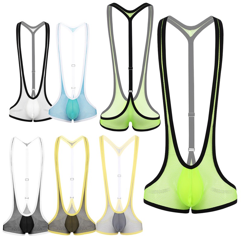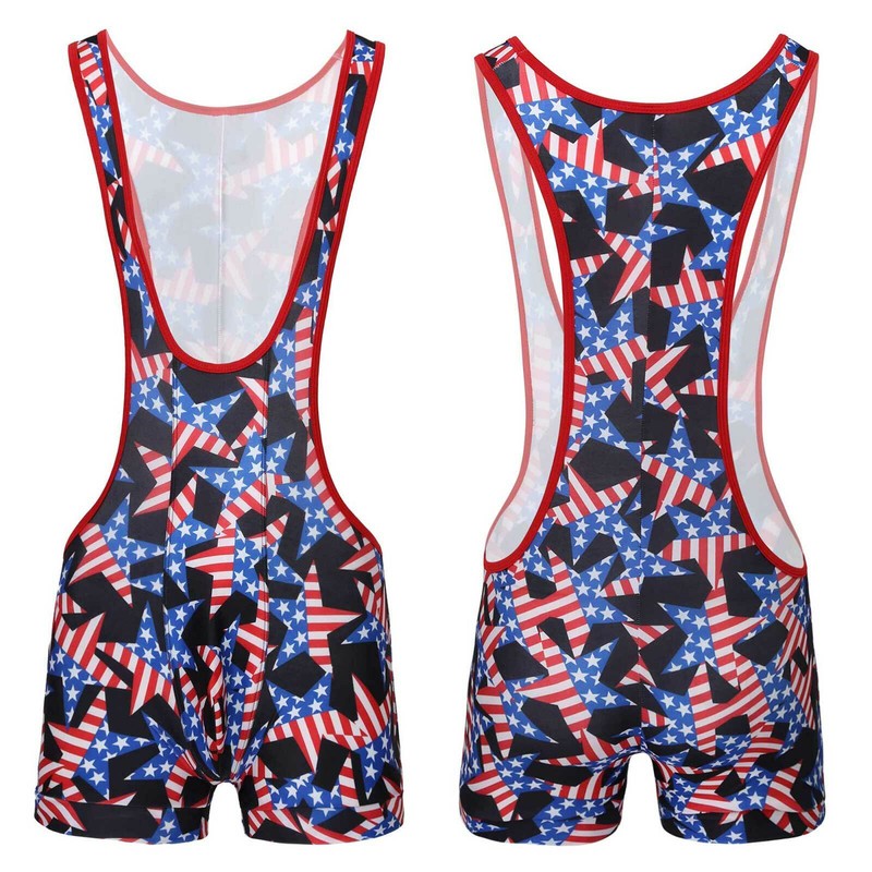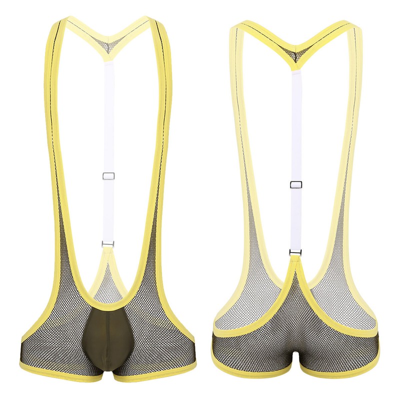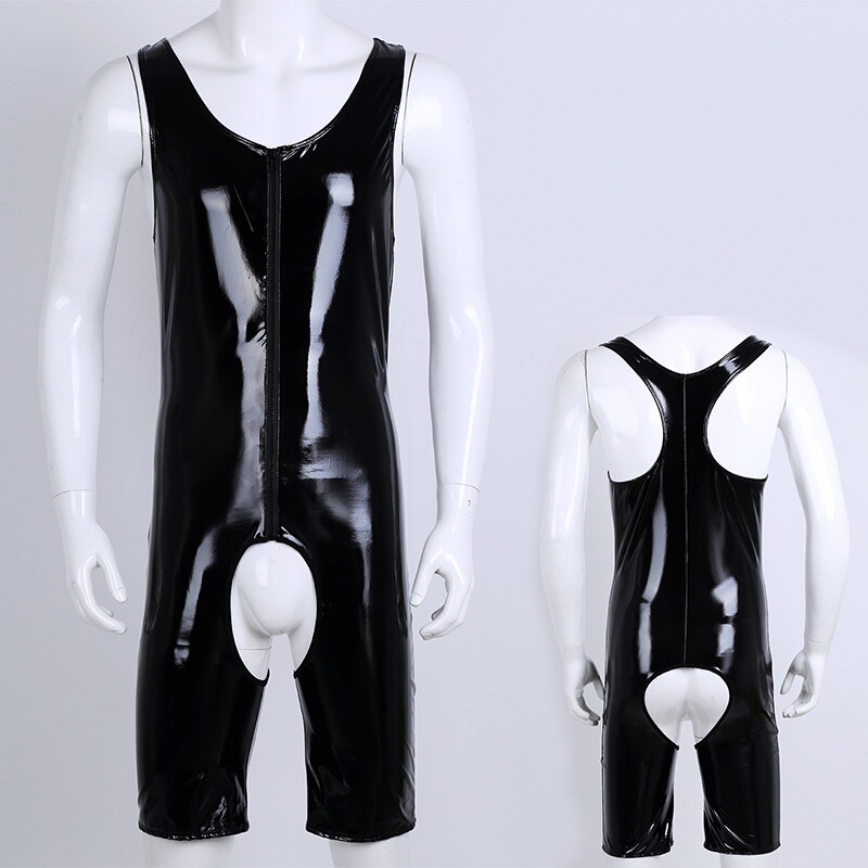 Men’s one-piece jockstrap leotard underwear jumpsuits wrestling singlet bodysuit, pull on closure.