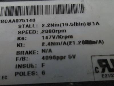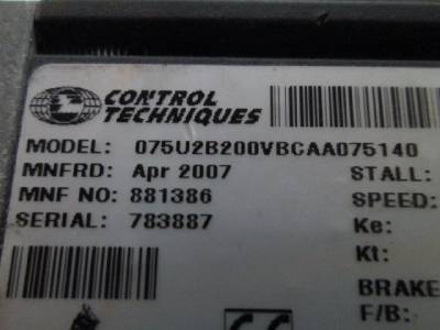 Control Techniques 075U2B200VBCAA075140 Brushless AC Servo Motor 2000rpm