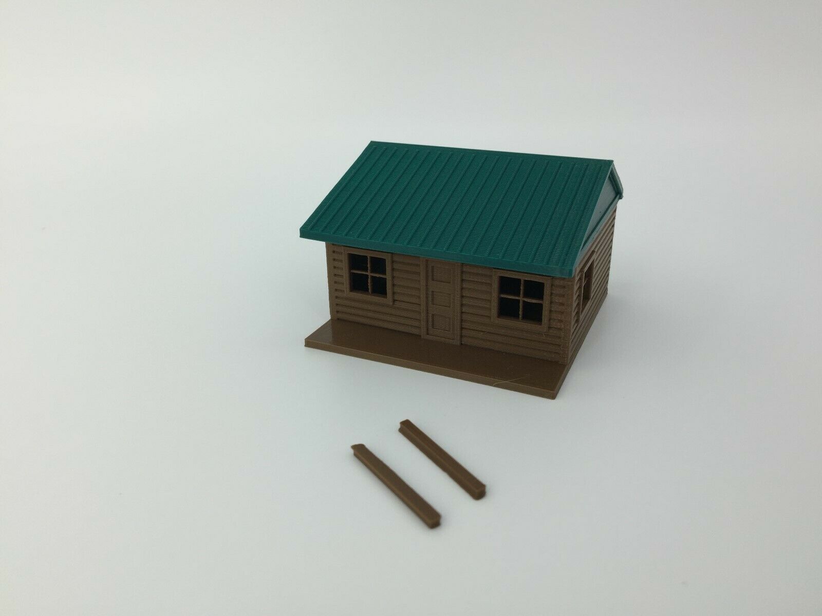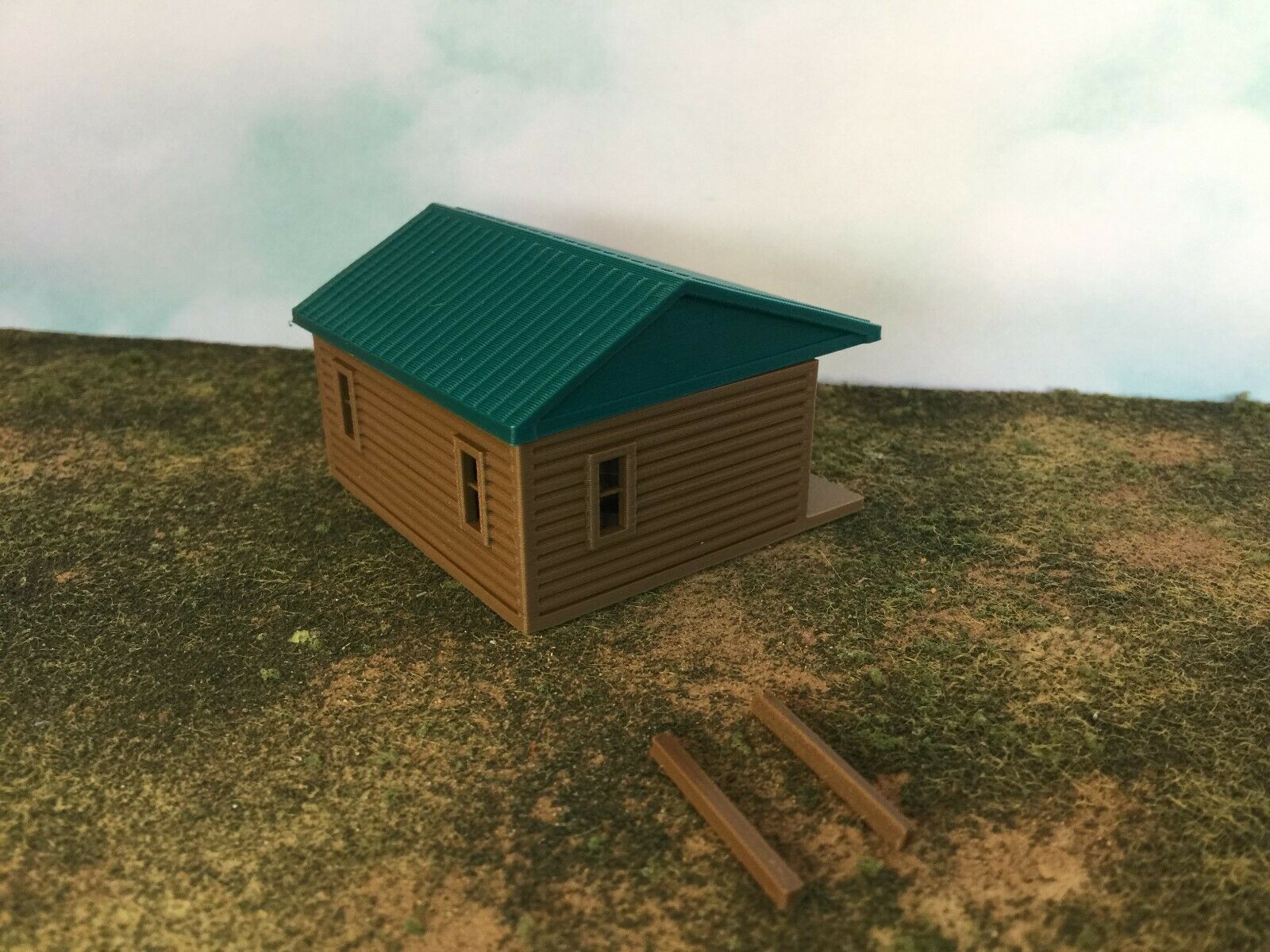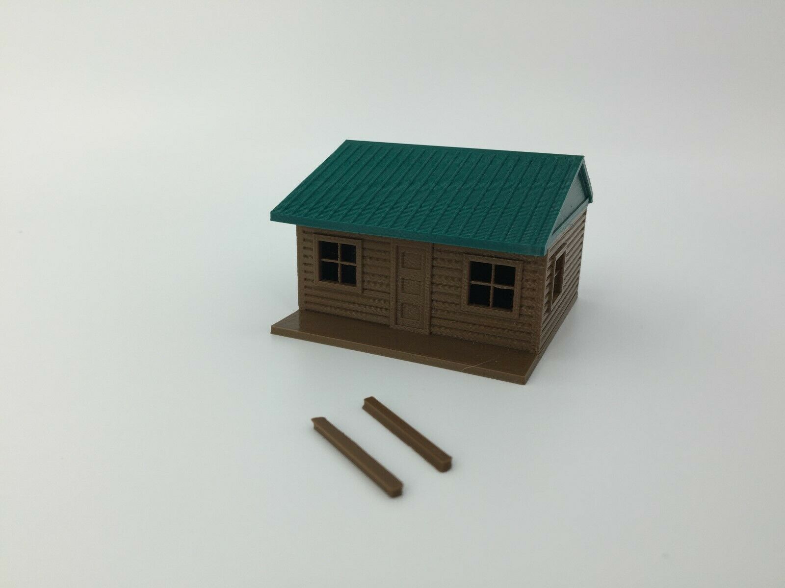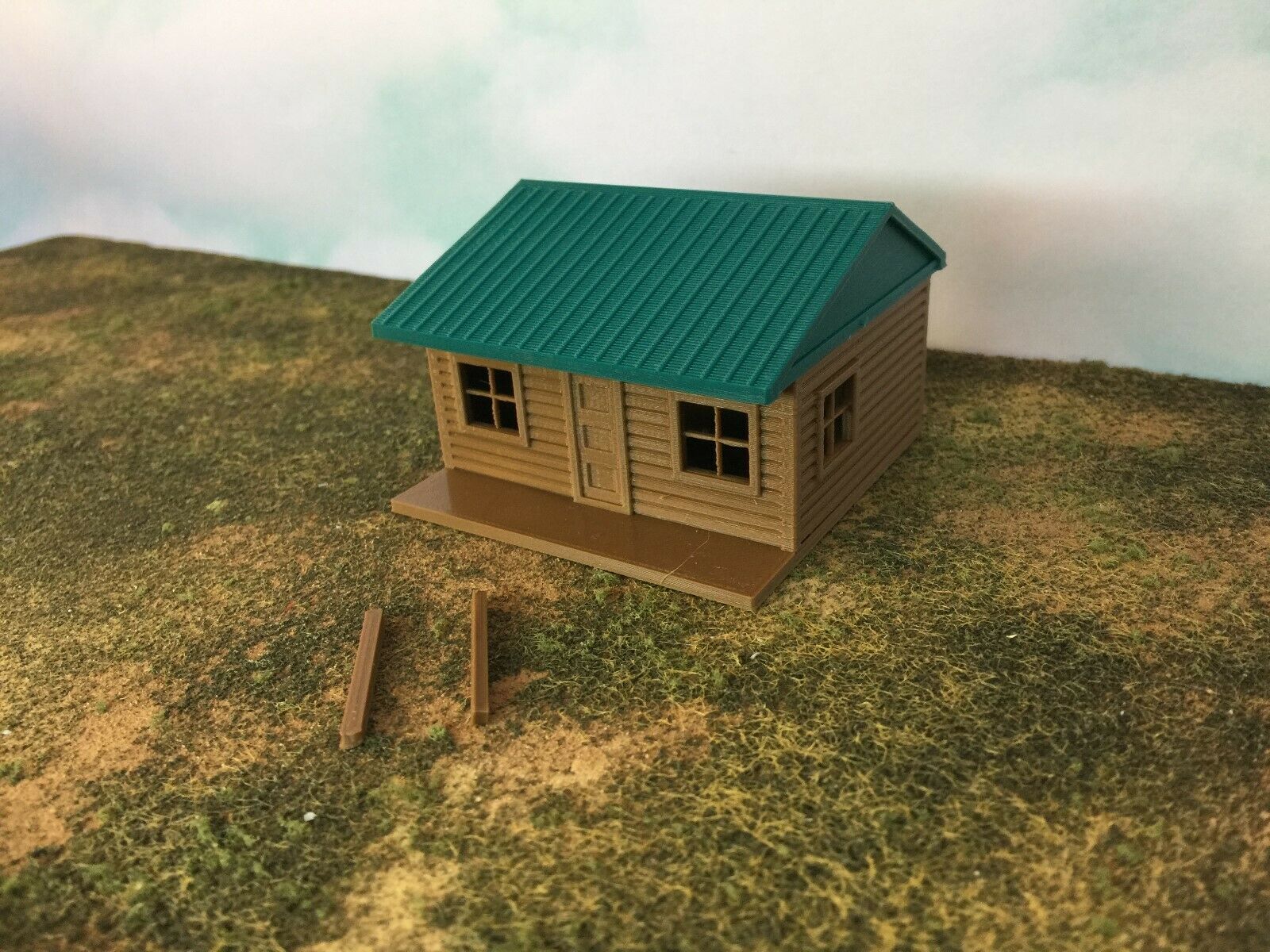 The Outdoor Series includes 7 well-built Cabins, 2 Shelters, and 1 Outhouse. All buildings are modeled in color and have a hole through the floor of the model to make wiring and lighting easy.
