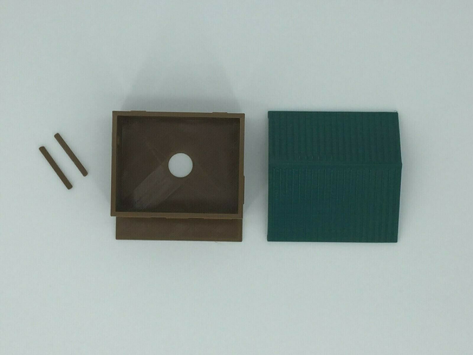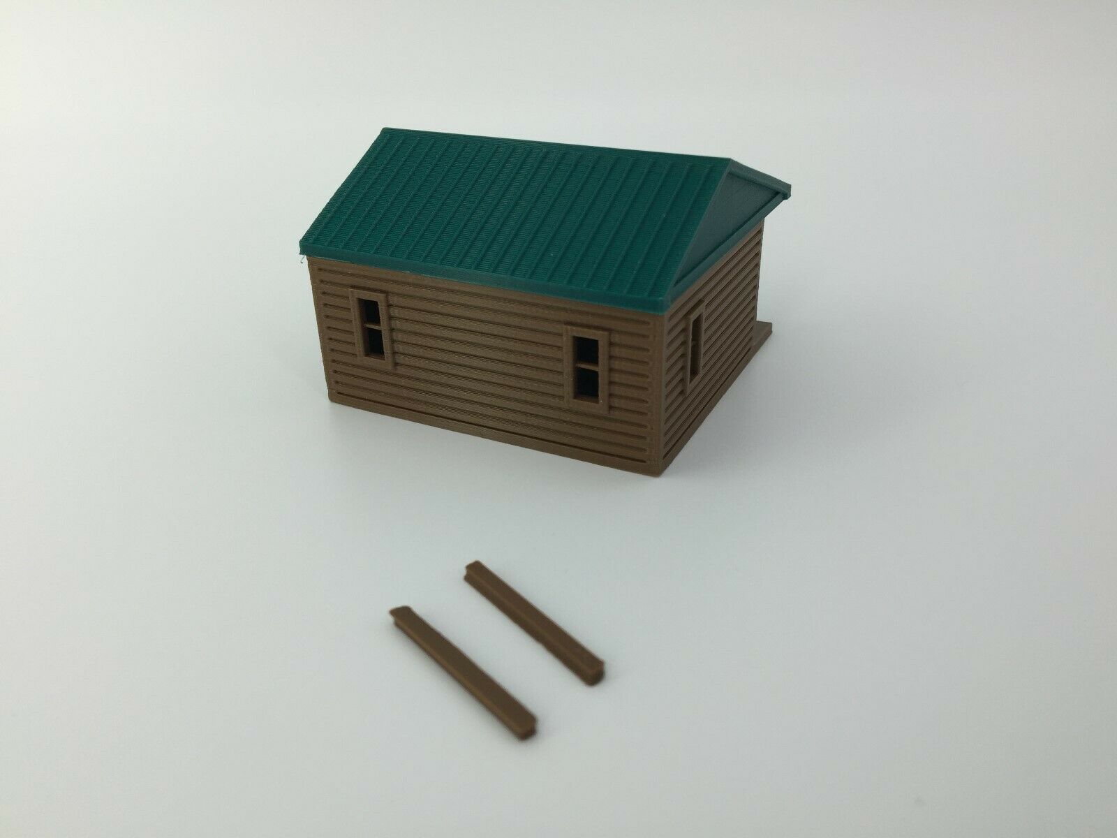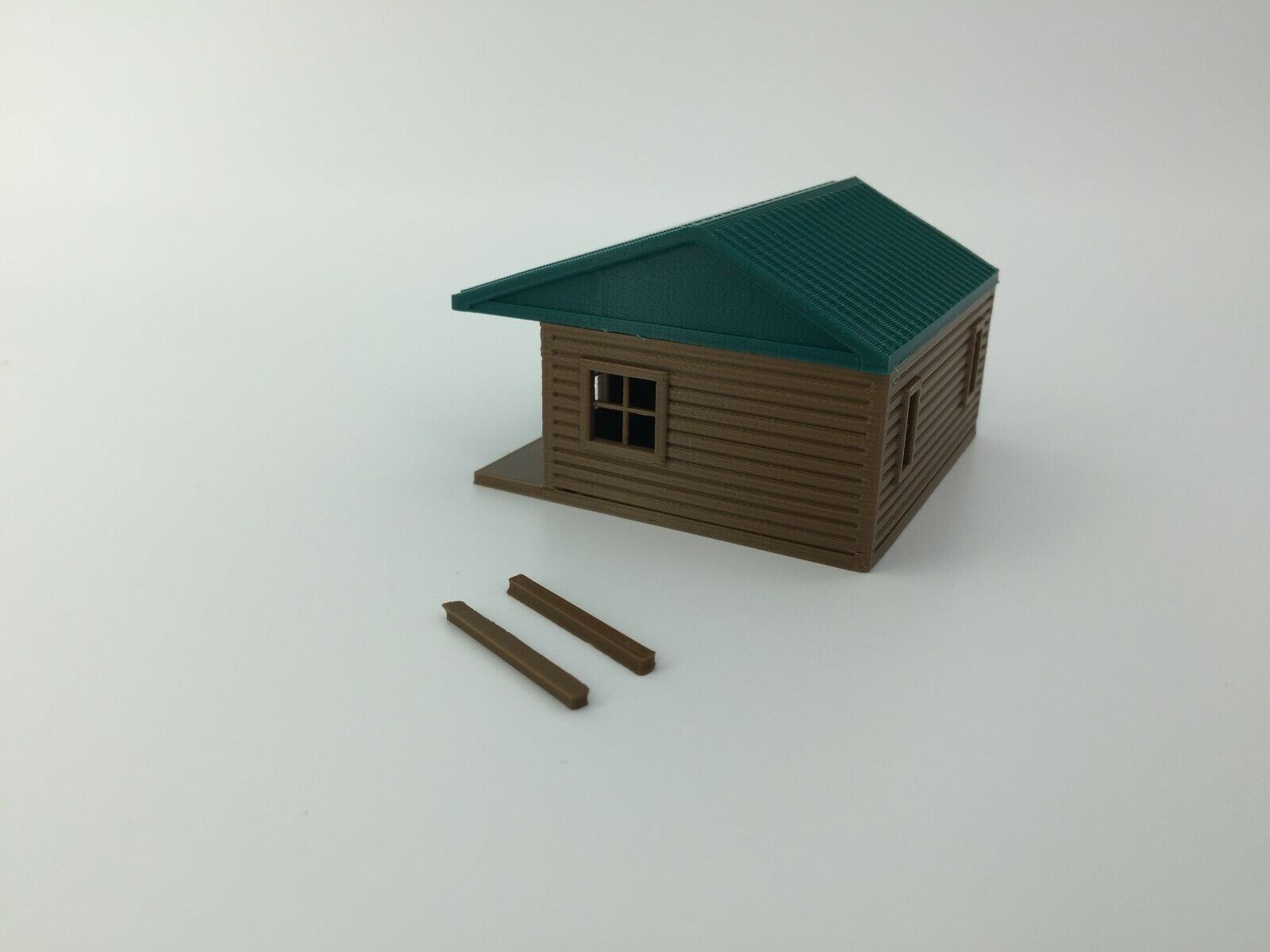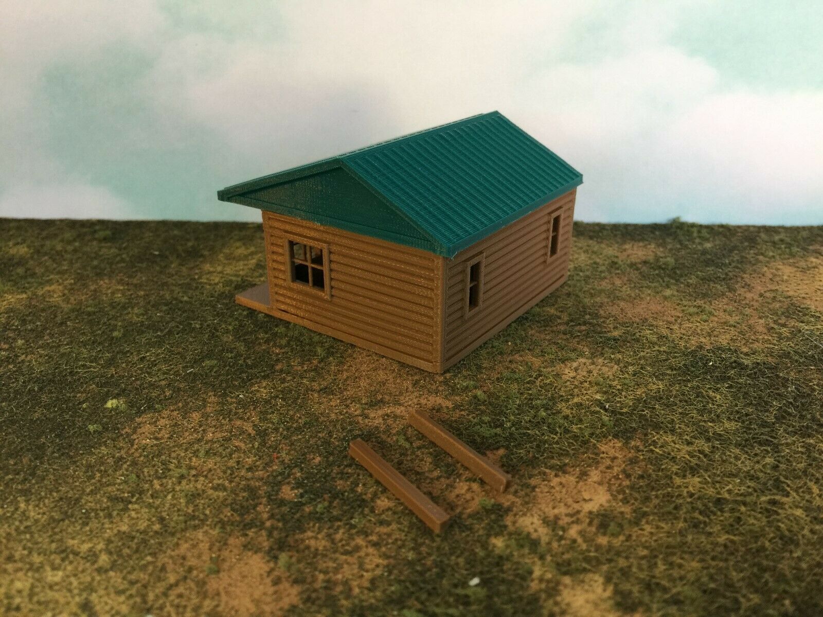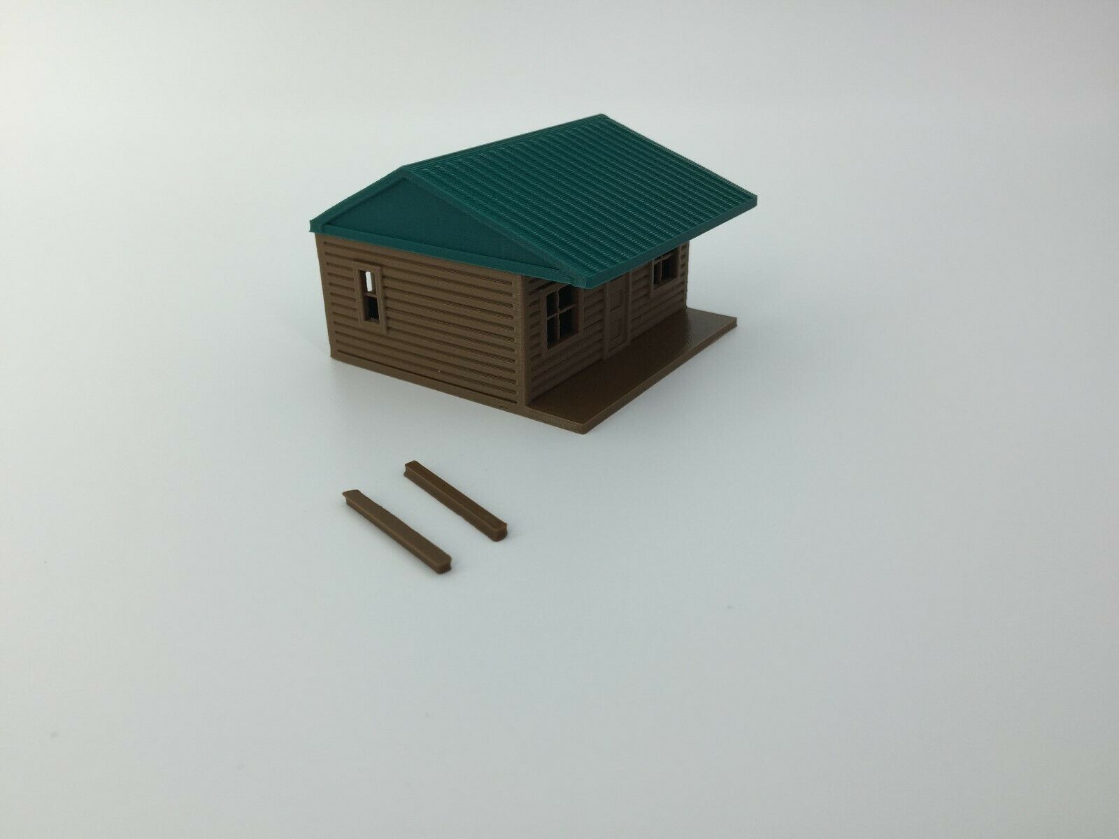 The Outdoor Series includes 7 well-built Cabins, 2 Shelters, and 1 Outhouse. All buildings are modeled in color and have a hole through the floor of the model to make wiring and lighting easy.