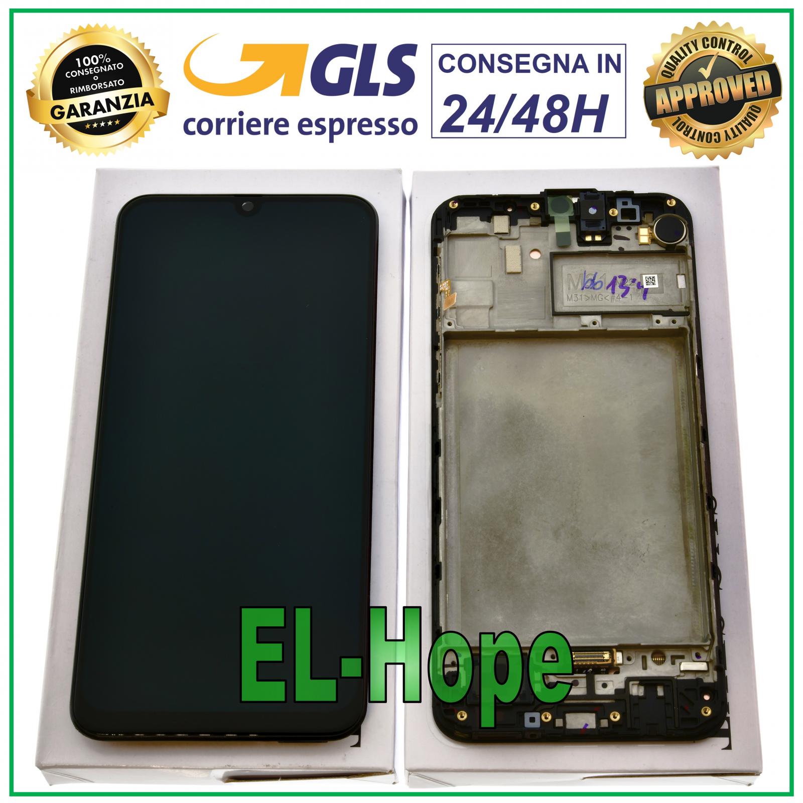 NB: PRIMA DI PROCEDERE CON L'ACQUISTO VERIFICARE CHE SUL FRAME IN POSSESSO CI SIA SCRITTO M31. TOUCH SCREEN + LCD DISPLAY ASSEMBLATI ORIGINALE 100% SAMSUNG GALAXY M31 SM-M315F SM-M315 IN SERVICE PACK COLORE: NERO Caratteristiche e specifiche tecniche: - Si raccomanda l'installazione da parte di un professionista del settore NON RIMUOVERE LE PELLICOLE PRIMA DI AVER TESTATO IL PEZZO, PENA LA PERDITA DELLA GARANZIA