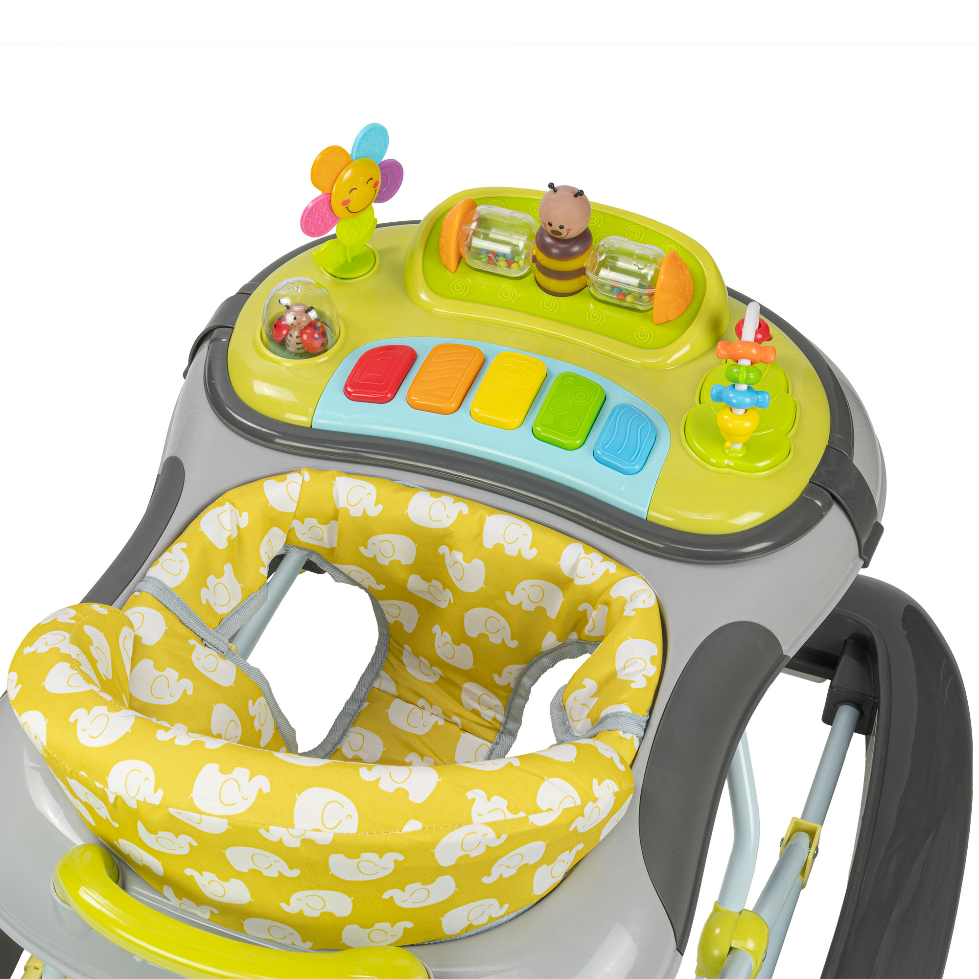 Der Babywalker Little World unterstützt Ihr Kind nicht nur bei seinen ersten Schritten, er bietet auch jede Menge zu entdecken. Das elektronische Playdesk bietet verschiedene Licht & Sound Effekte. Für diese sind 2 AA Batterien notwendig, diese sind nicht im Lieferumfang enthalten. Die verschiedenen Spielzeuge haben nicht nur ein niedliches Design, durch die Dreh- und Greifübungen wird auch die Motorik ihres Kindes gefördert.