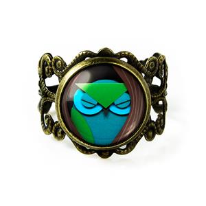 Cute Paper Craft Owl Teal Cartoon Handmade Antique Bronze Ring!
