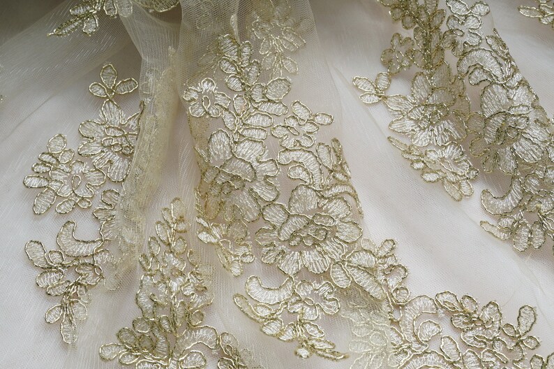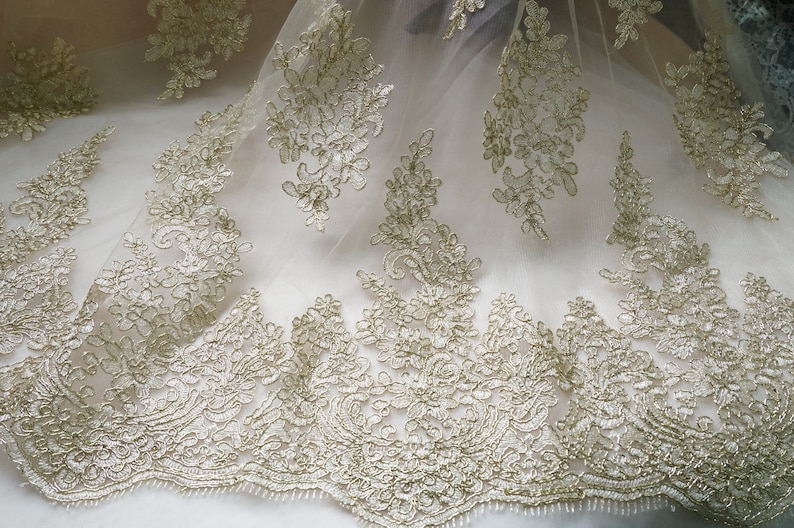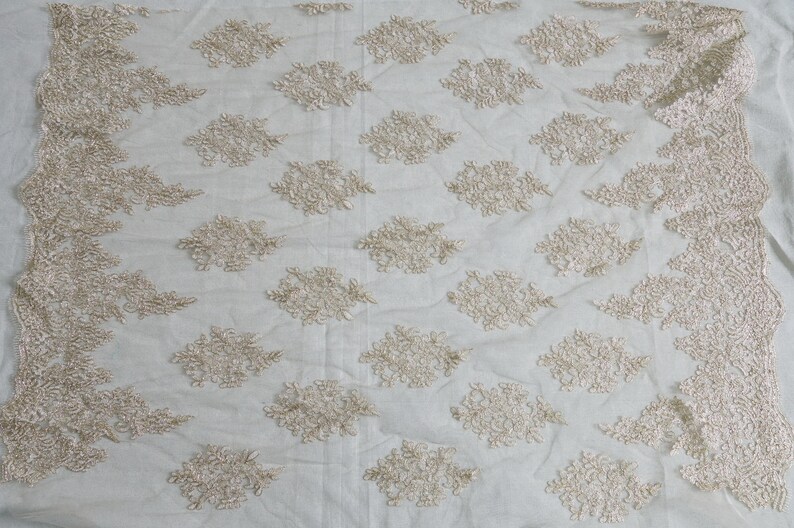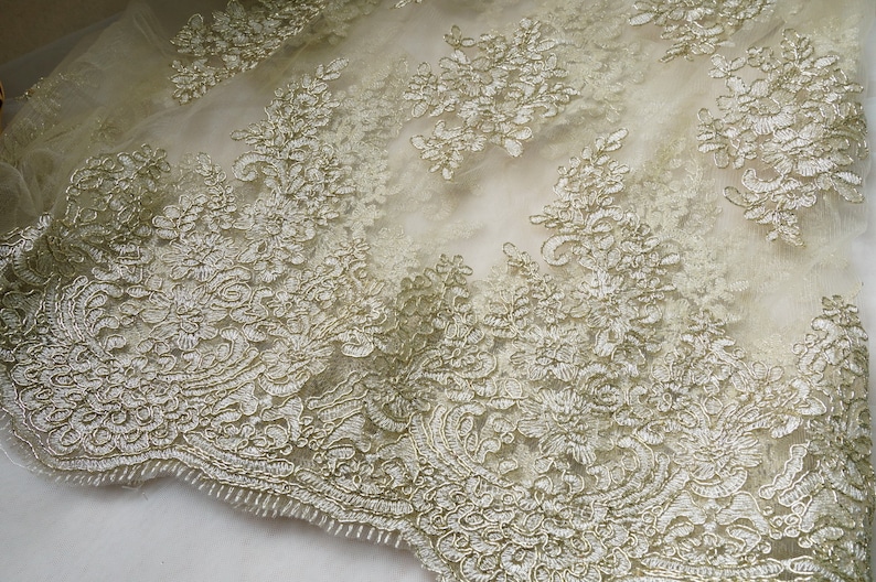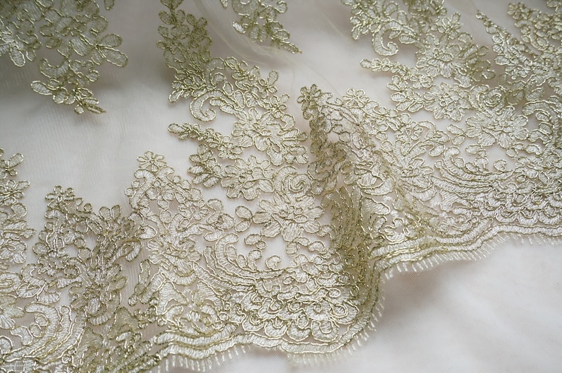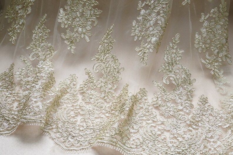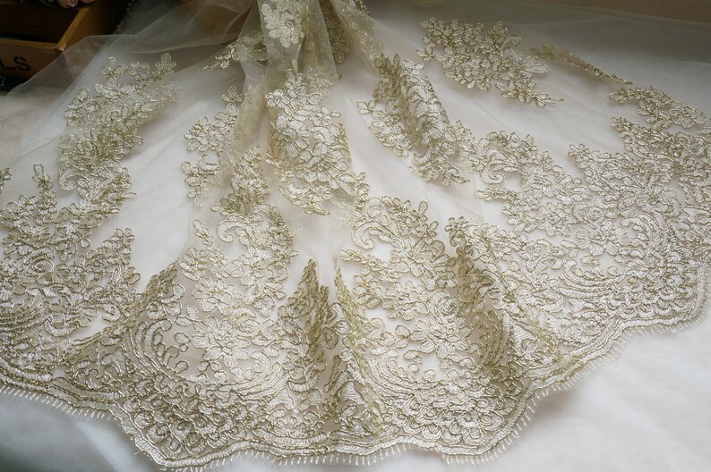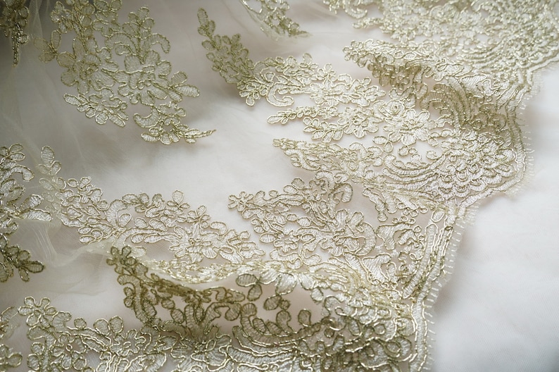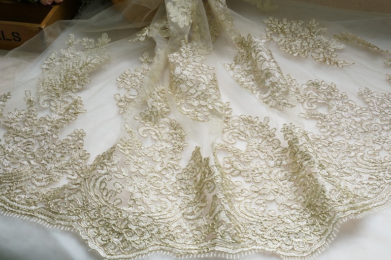 This amazing alencon lace fabric is specially for bridal gown, wedding dress, bridal veil. Super gorgeous alencon lace fabric with scalloped edge, vintage style. Highly recommended for all brides!!!