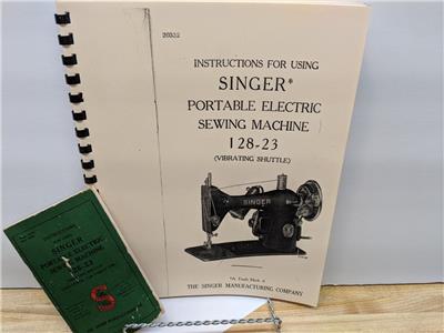 This offering is for a copy of the Singer 128-23 Electric Sewing Machine Instructions Manual. See the pictures for an idea of the shape and condition of this item. This manual has been increased in size to 8.5 inches by 11 inches, making it very easy to read.