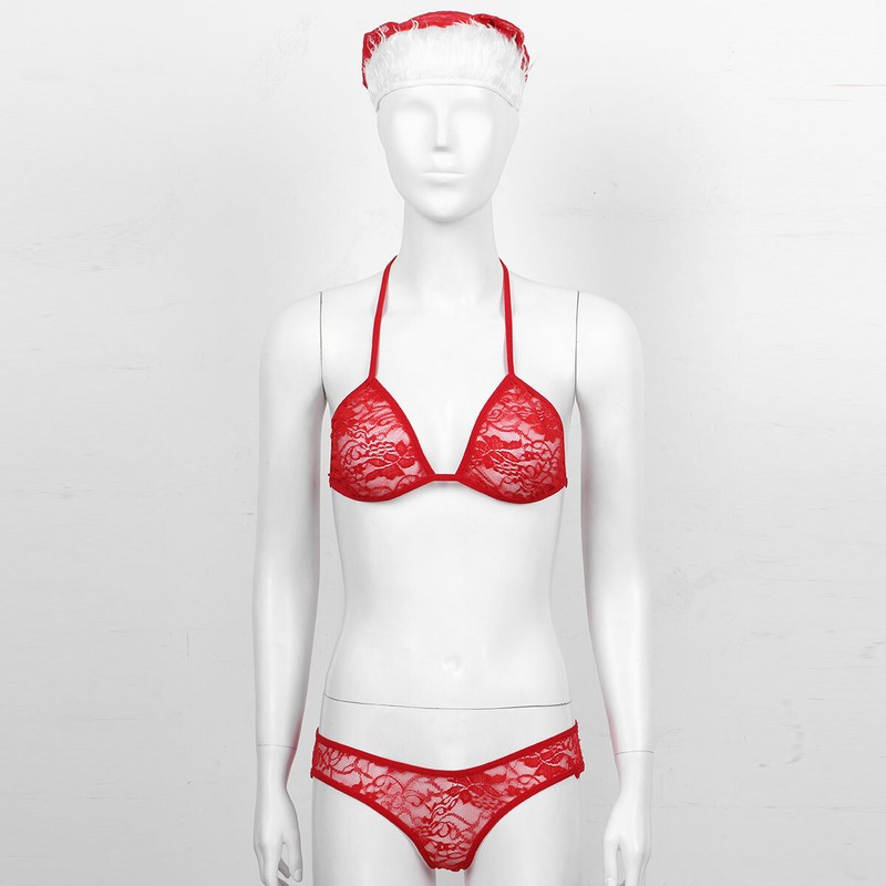 Set Include: 1x Women’s Bra, 1x Brief, 1x Christmas Hat