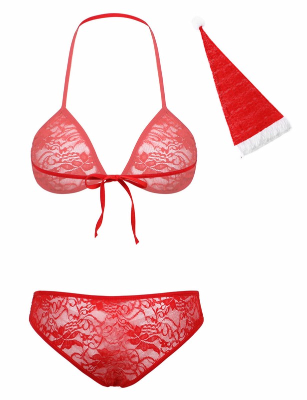 Women’s lace Christmas lingerie set, makes you look hot and alluring.