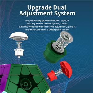 The puzzle is equipped with MoYu’s special dual adjustment tension system, 9 levels elasticity combines with the screws adjustment, giving it more choice to reach a better performance!