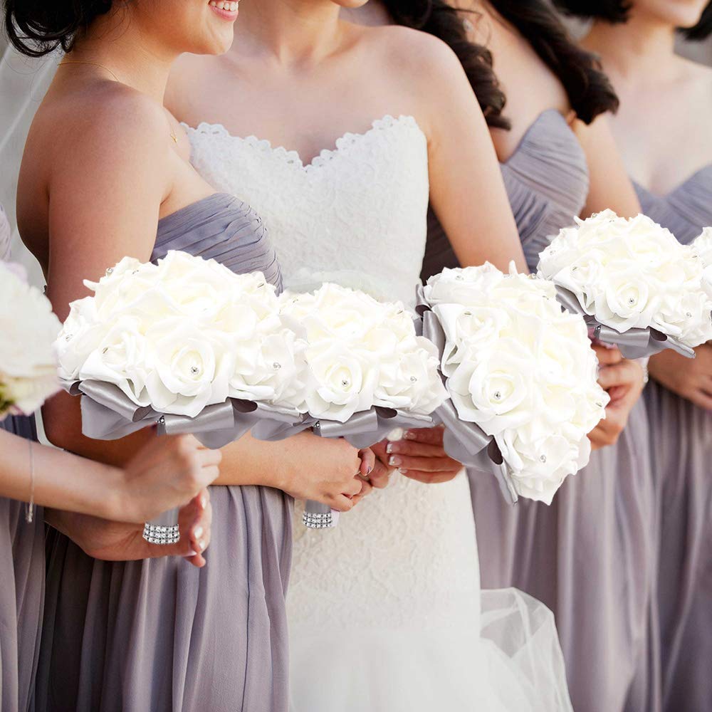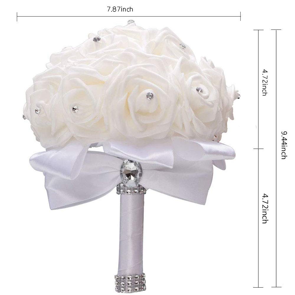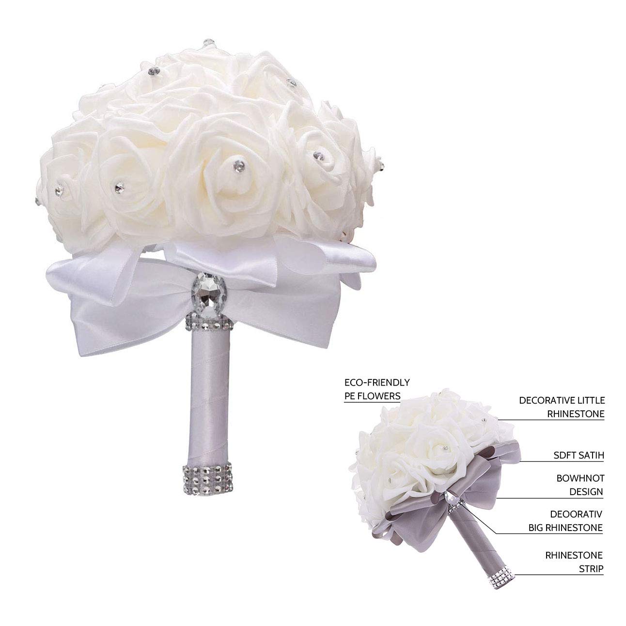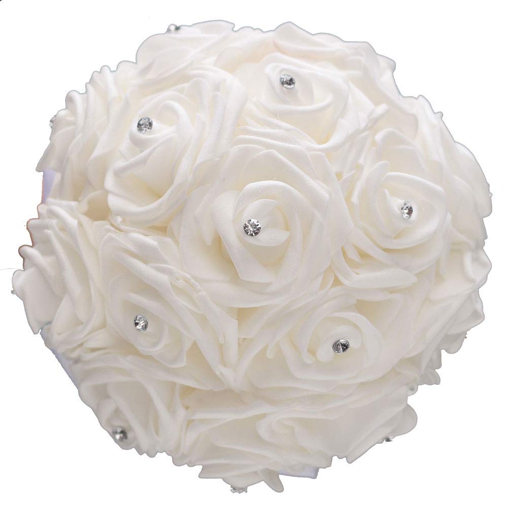 Jzhen Bouquet da sposa artificiale bianco, bouquet da sposa di nozze fiori bouquet da sposa artificiale