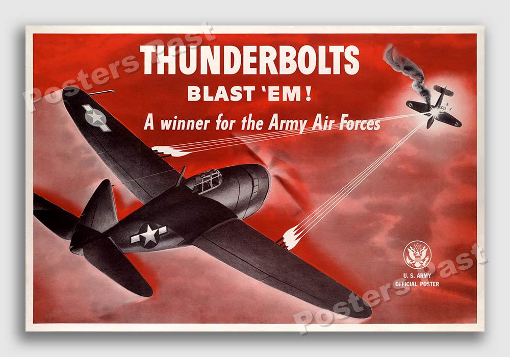 The poster reads: “Thunderbolts Blast ‘Em! - A winner for the Army Air Forces.