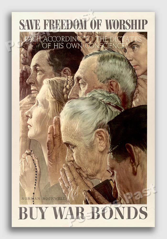 praying. The poster reads: “Save Freedom of Worship - Buy War Bonds -
