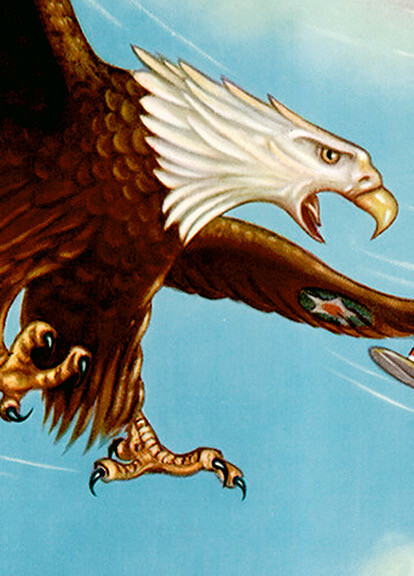 flying in the sky with a Bald Eagle. The poster reads: Wings Over America -