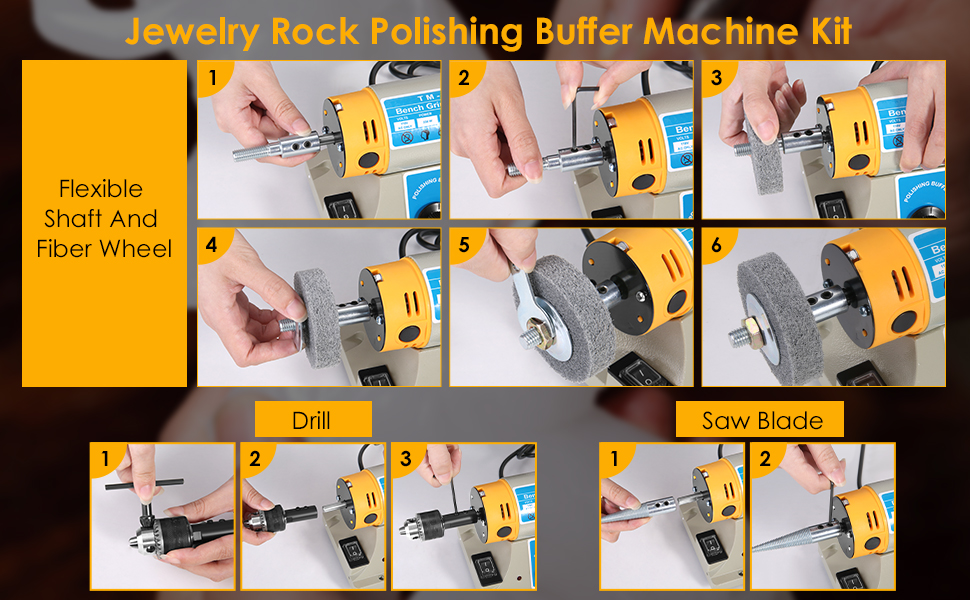 【Adjustable Speed】This desktop buffer polisher has a powerful motor. A shift dial lets you adjust the speed to any rpm between 800 and 10,000 rpm. Different speeds handle different materials.