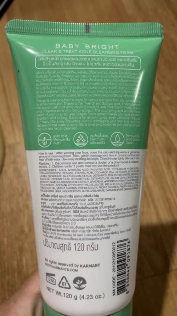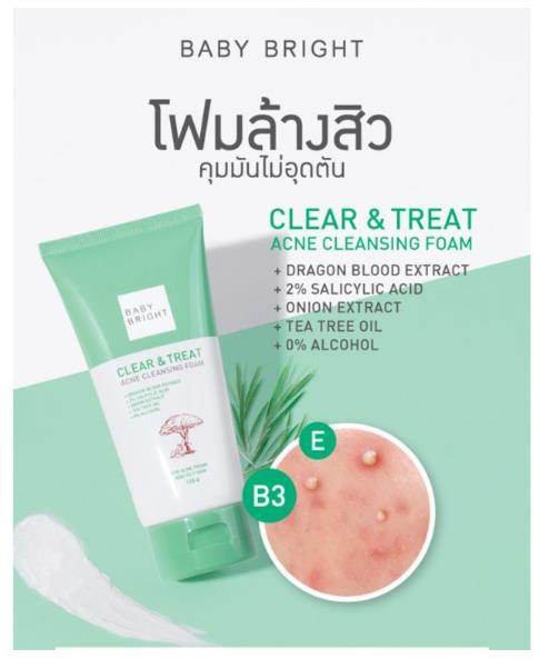 Product Description: Baby Bright Acne Cleansing Foam is an anti-acne facial cleanser created for oily and acne-prone skin. The rich foam removes excess oil, impurities, and pore-blocking residue while helping to reduce inflammation and visible acne marks. Powered by Dragon Blood Extract, Salicylic Acid, Tea Tree Oil, and skin-strengthening vitamins, it helps cleanse deeply without stripping moisture, leaving the skin clear, soft, and balanced.
