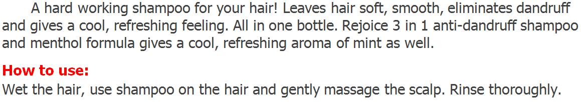 | 370ml Rejoice Shampoo Anti Dandruff 3in1 Fresh And Smooth With MENTHOL |