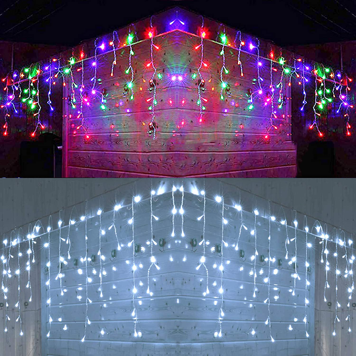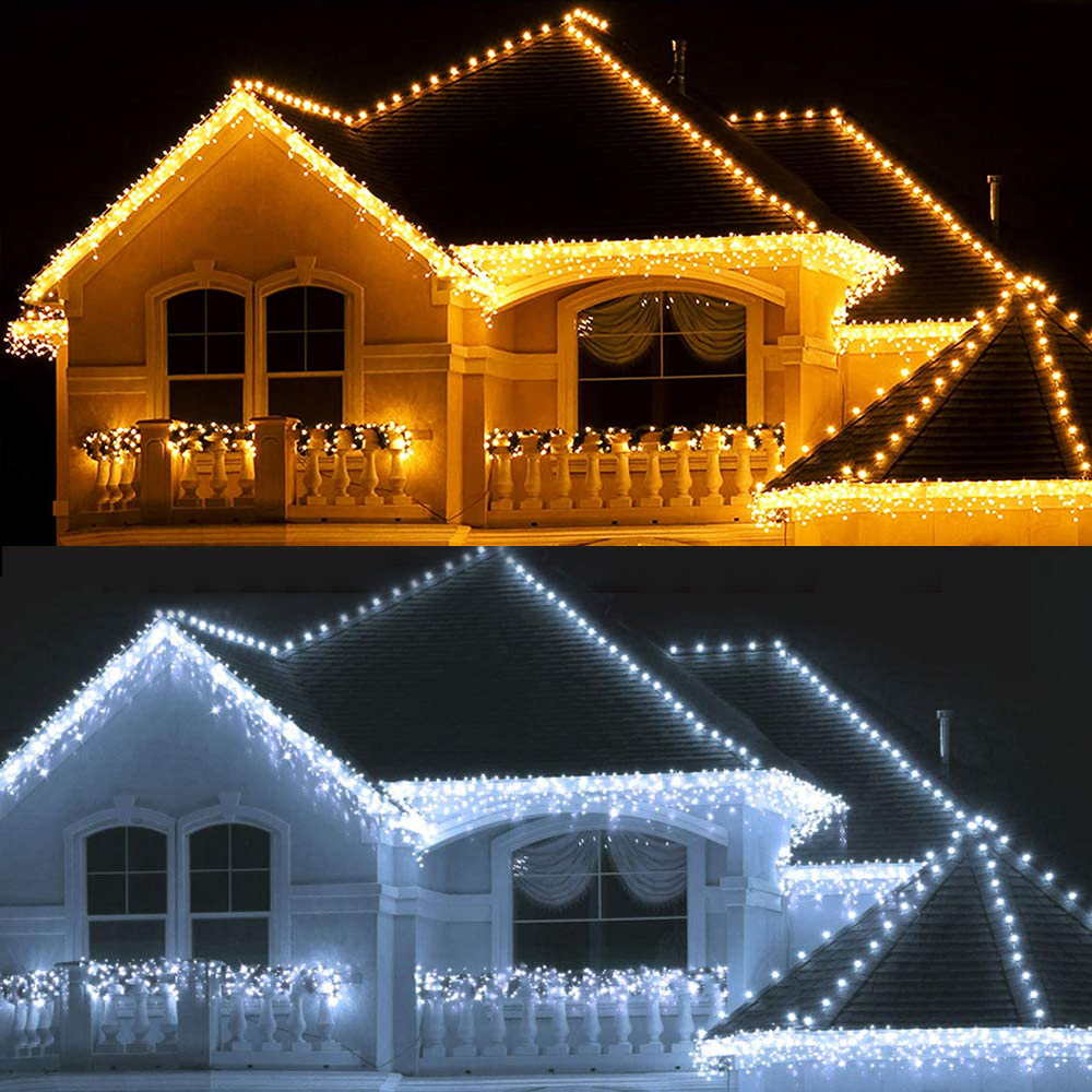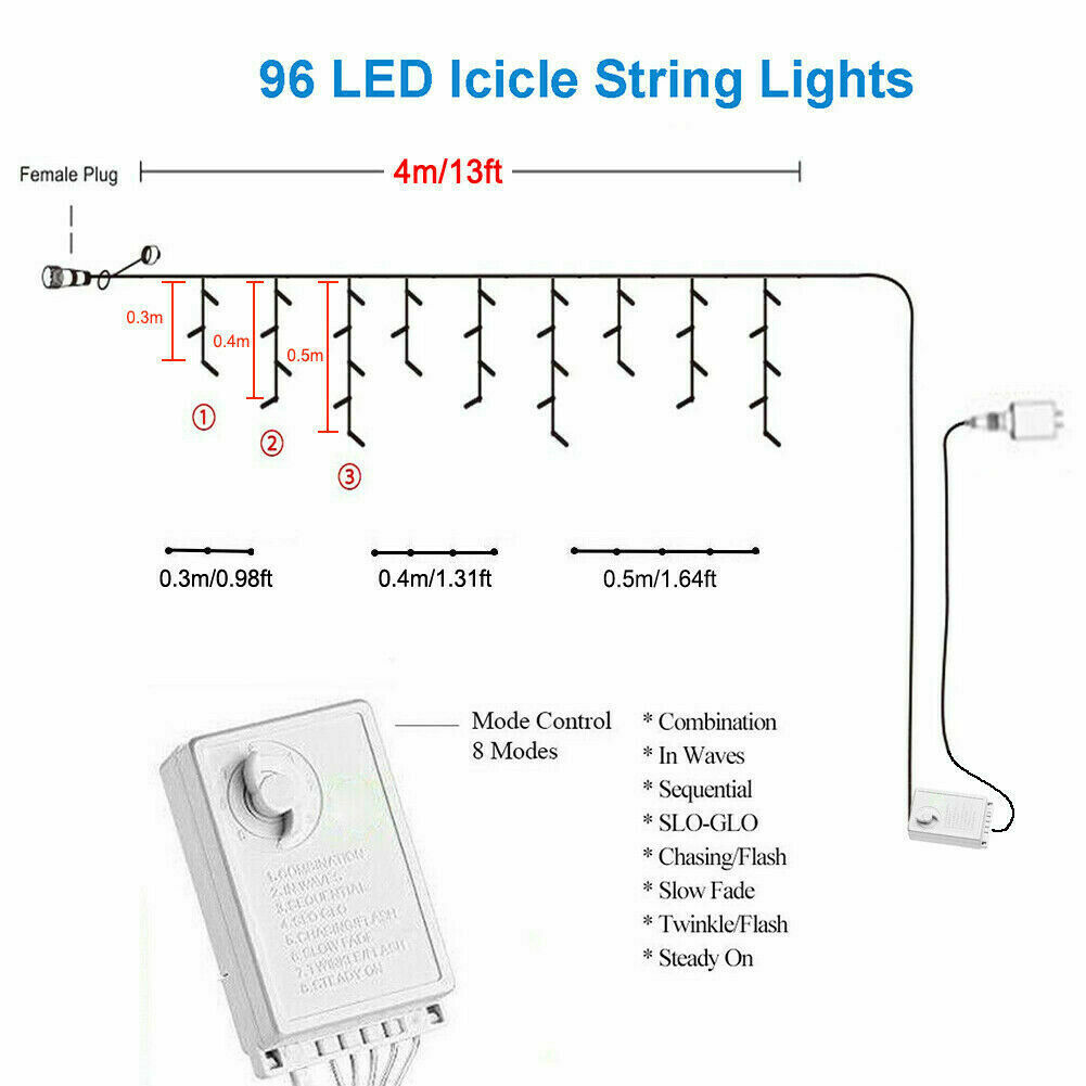 The Plug and Control Box are not waterproof. Please use insulating tape to protect against rain. Features: -Icicle curtain lights can be great decoration for your home, patio, garden, yard or wedding, Christmas, Holiday and party etc. -The