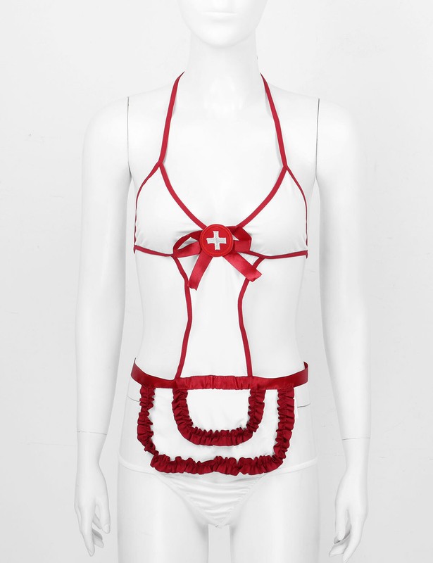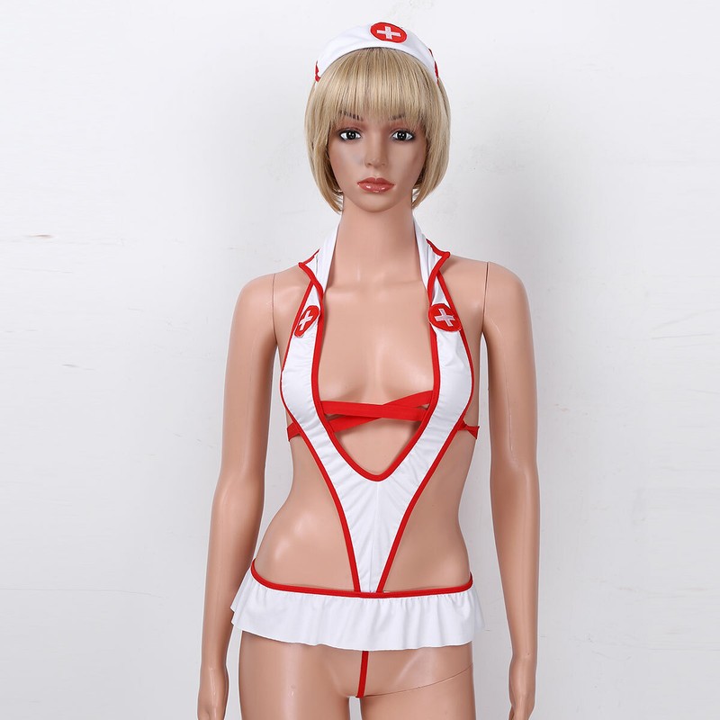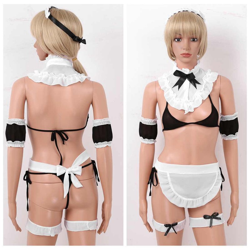 Women sheer school girl bodysuit lingerie sets, good elasticity, one size fits most bodies.