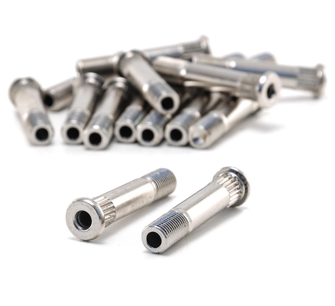 These kingpins feature a hollow core to significantly reduce truck weight allowing for higher ollies and easier flip tricks. Designed to be a universal fit for most skateboard trucks, these hollow kingpin bolts will press into your baseplate replacing the original bolt.