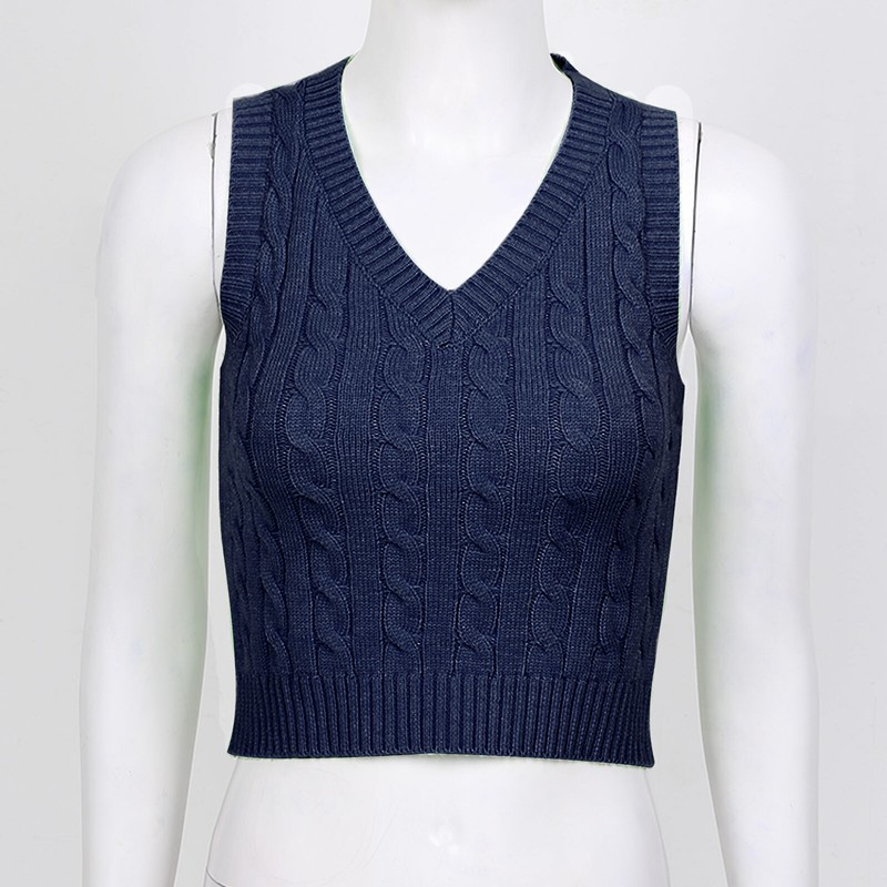 Ladies Casual O-neck Knitted Vest Sleeveless Cable Knit Sweaters Knitted Pullover.