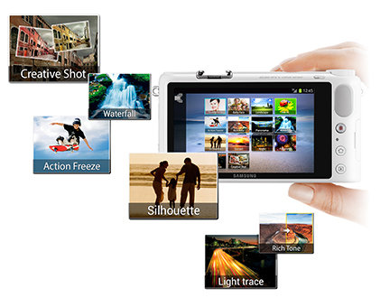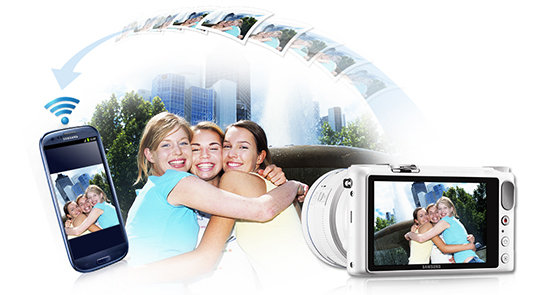 The NX2000 features Near Field Communication (NFC) technology and works with Samsung's Smart Camera App (for Android), so you can instantly pair your camera with your smartphone and take advantage of features such as AutoShare and Remote ViewFinder.
