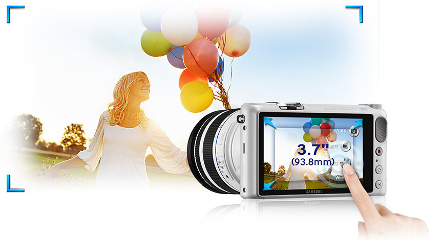 To help you clearly see and edit your photographs, the NX2000 is equipped with a 3.7-inch WVGA touchscreen display. There are no physical menu buttons cluttering the back of the camera--all of the menu options are built into the display. The touchscreen shows a full spectrum of colors, so what you see on the screen matches your subject.