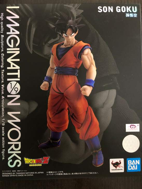 Product Description Tamashii Nations brings you to a new pinnacle of posable action figures: Imagination Works! The first release is Son Goku from Dragon Ball Z. Designed to bring this 2D character to ultra-realistic 3D life, it was created in 1/9 scale, which is larger than the standard 1/12, to capture accurate sculpting, exquisite detail, and the ultimate in visual appearance. That's what Imagination Works is all about! The head features two-tone metallic coloring plus added highlights, accentuating its three-dimensionality while replicating his appearance from the anime. The addition of painted shadows brings out the detail in his outfit, for an even more realistic appearance. And the eyes are mounted separately, allowing them to be swapped to re-create different expressions. The arms feature a newly developed "seamless" material that hides the seam lines where natural musculature would be. Each Two types of facial expression parts and three types of eye parts are included for black hair and Super Saiyan, and you can reproduce up to 12 patterns. Product Features 7 inches (17.78cm) Made of plastic 1/9 Scale Features regular and Super Saiyan head sulpts Uses a seamless structure on the arm Based on the Dragon Ball Z anime series Box Contents Goku figure 2 Regular face plates 2 Super Saiyan face plates 3 Regular sets of eyes 3 Super Saiyan sets of eyes 4 Sets of hands Pedestal Age 15 and above. Not suitable for children under 3 years old. Contains small parts.