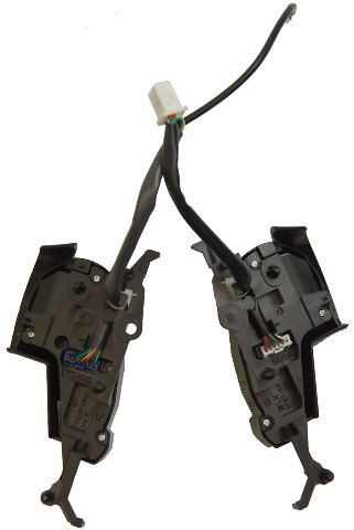 Click Thumbnails to EnlargeThis is the steering wheel mounted audio control buttons for 2007-2013 Toyota Sequoia and Tundra vehicles. This switch set is for leather steering wheel vehicles. These buttons are a black colored plastic. These switch assemblies mount on the steering wheel. The left hand button functions include Volume Up/Down, Scan Up/Down, Mode, and Telephone Answer/Hangup. The right hand button functions include the Voice Control button.