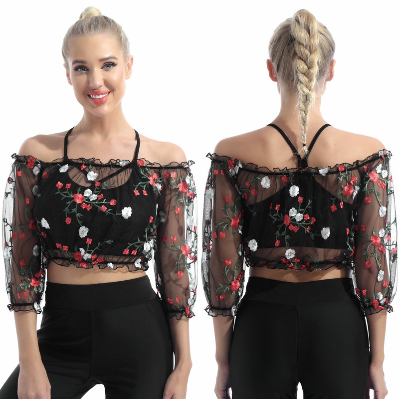 Floral pattern, lace crop top with removable shoulder straps, slim fit.