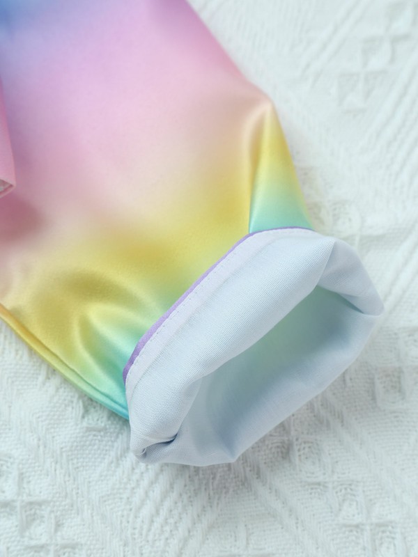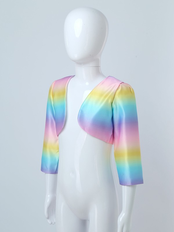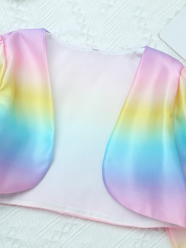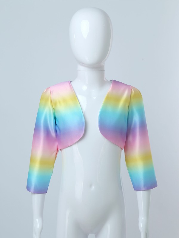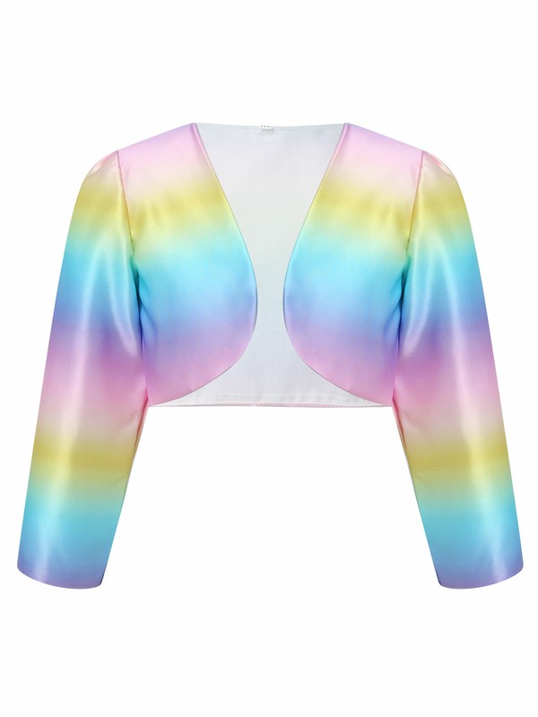 Girls Long Sleeve Gradient Color Rainbow Print Cape Capelet Crop Coat for Party Dress.