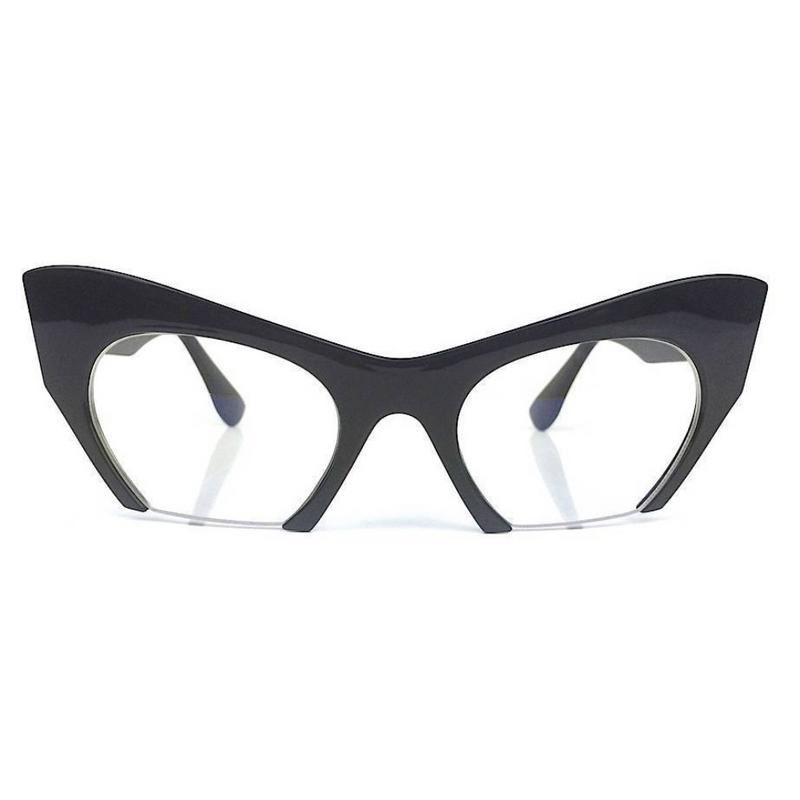 EYEGLASSES CUT OFF RASOIR SLICED CAT EYE ES WOMEN EYEWEAR BLACK - CLEAR LENS, BLACK FRAME