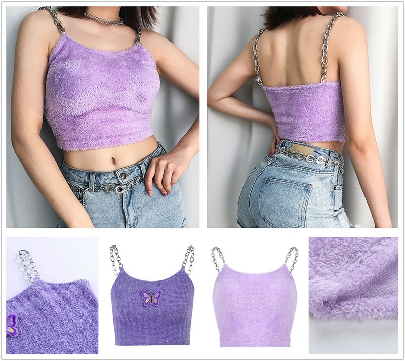 For fall and winter, you can paired this sleeveless crop camisole with crochet cardigan and suits.