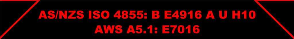 Classification: AS/NZS ISO 4855: B E4916 A U H10 AWS A5.1: E7016 |